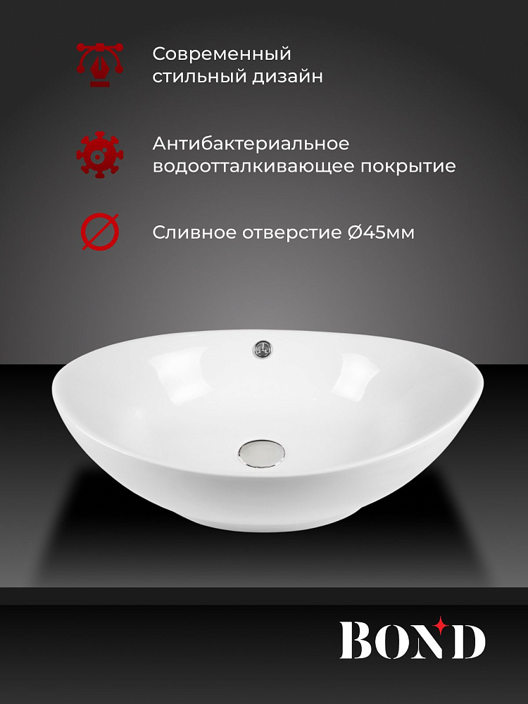 Отзывы о Накладная раковина BOND Овал S55-590 59 белая, овальная