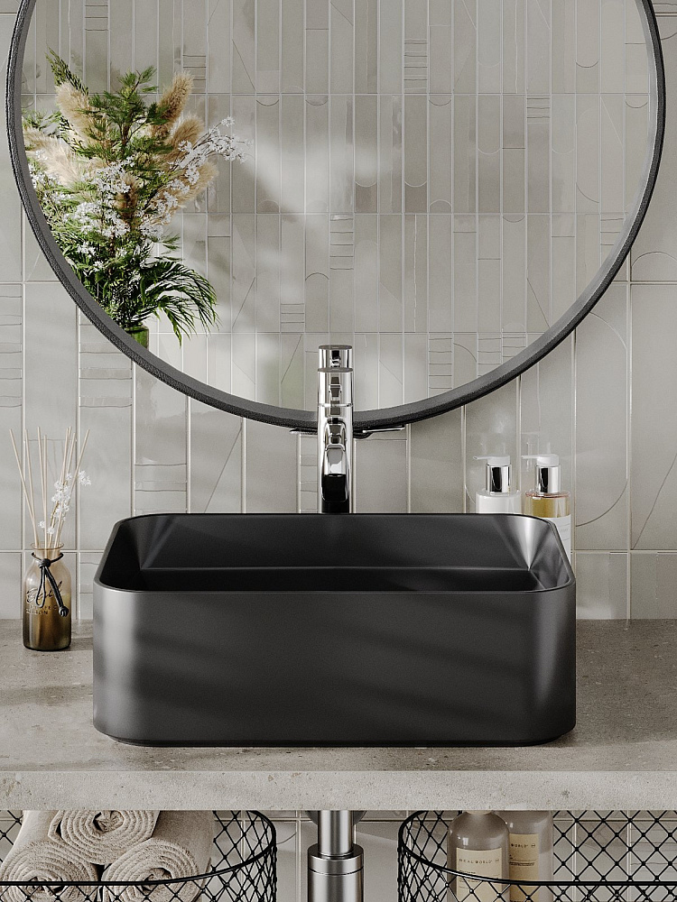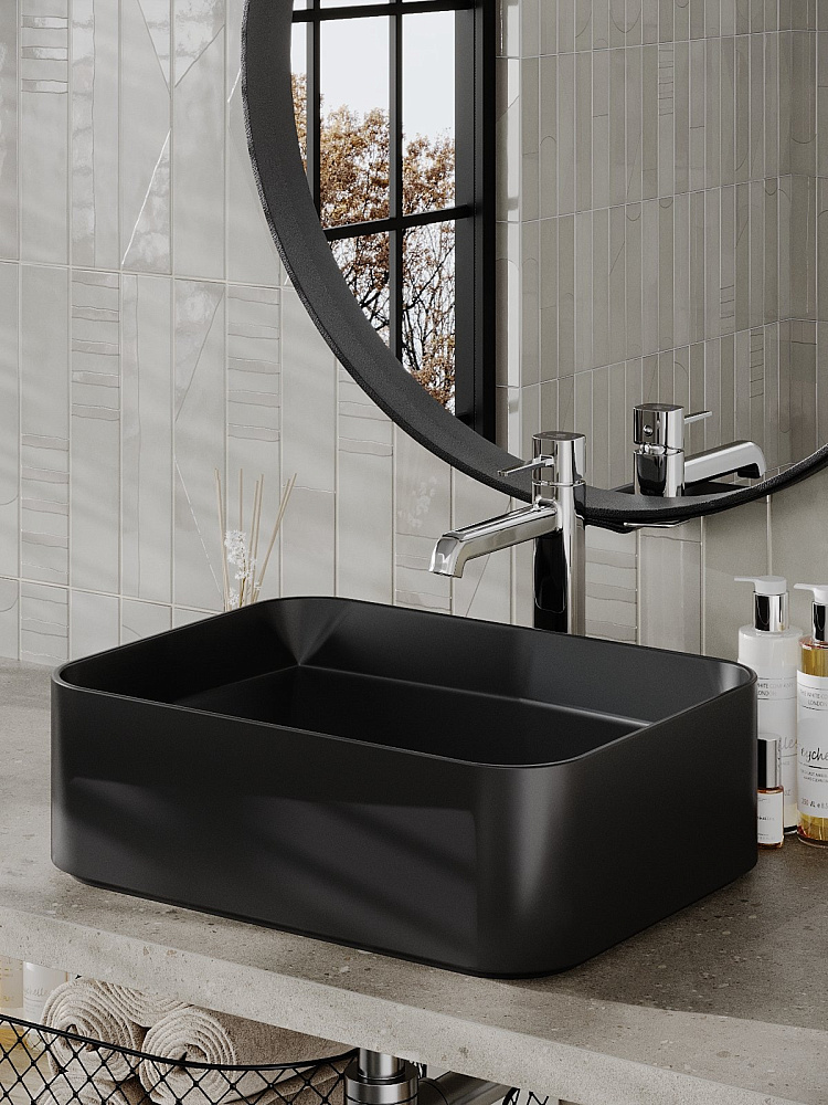 Накладная раковина Orange B02-460MB 47 матовая черная, прямоугольная
