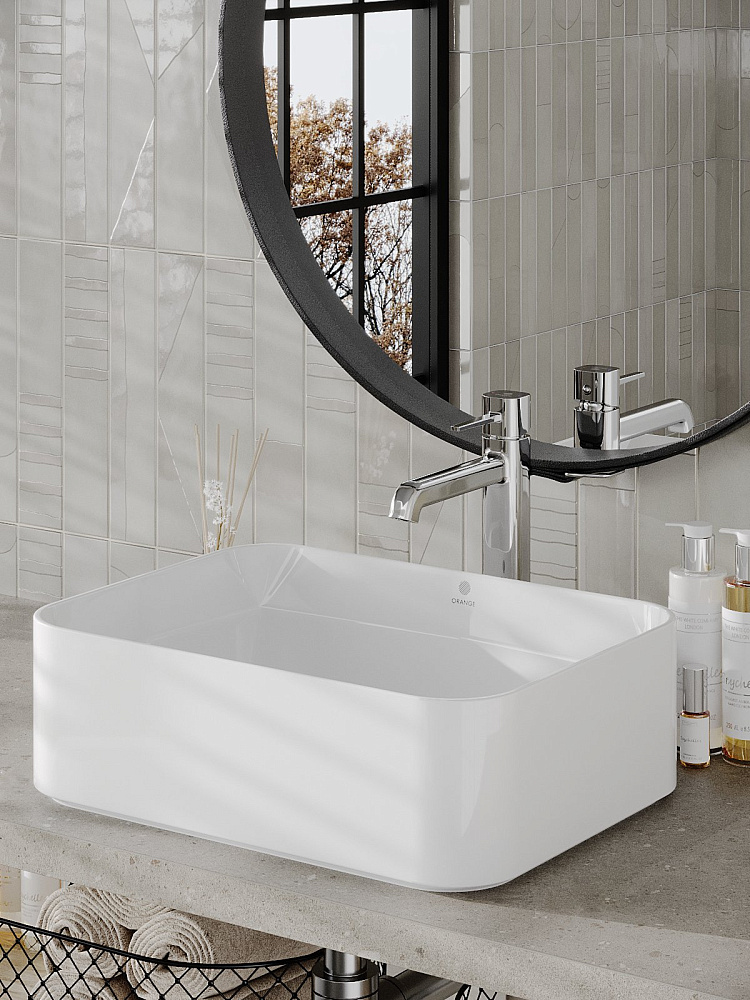Накладная раковина Orange B02-460W 47 глянцевая белая, прямоугольная