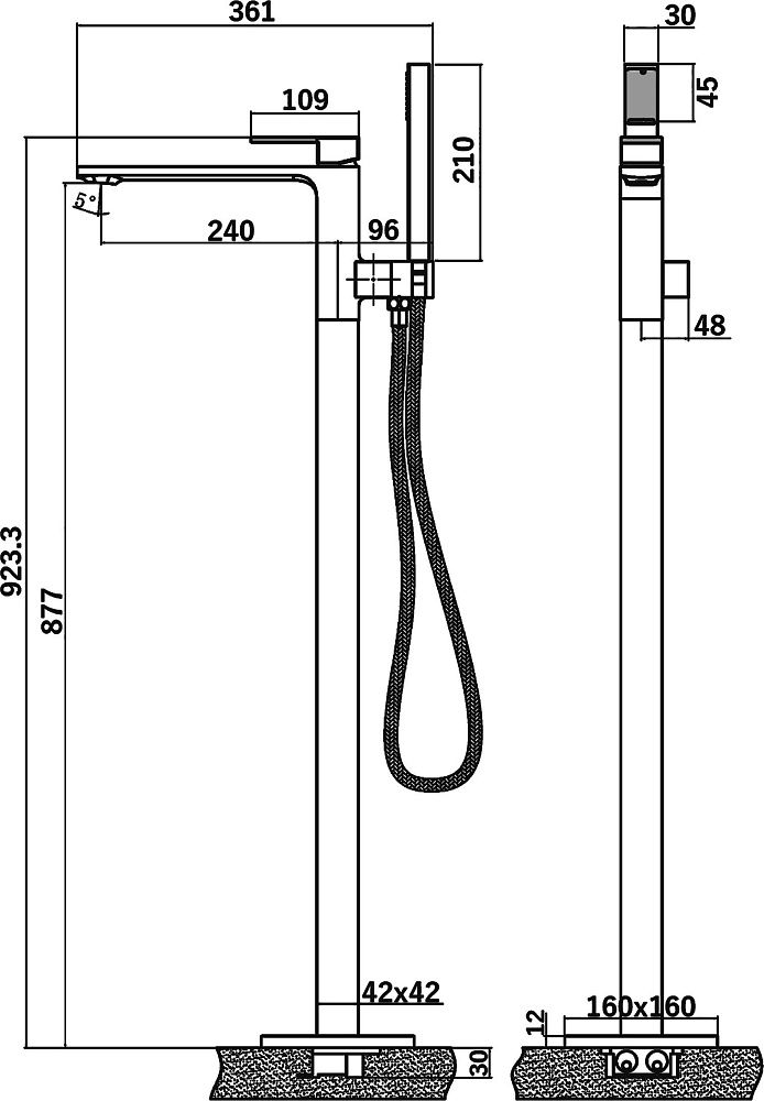 Напольный смеситель для ванны с душем Orange Lutz M04-336b черный