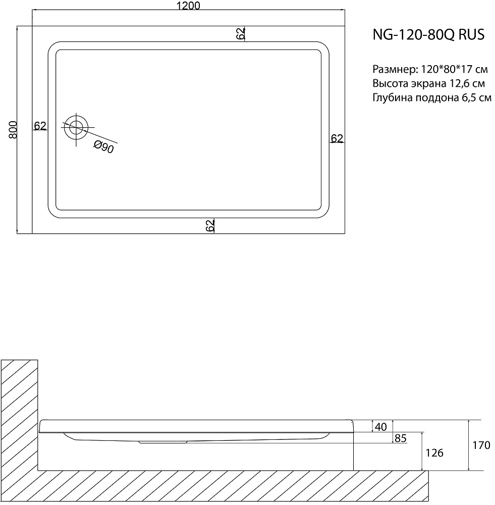 Поддон для душа Niagara Nova 120801QRUS 120x80 см, прямоугольный
