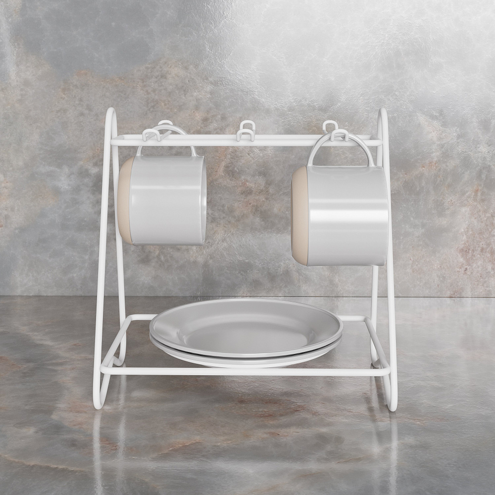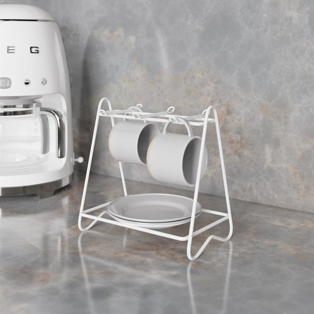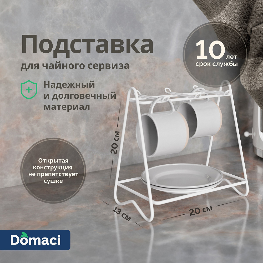 Подставка Domaci Феррара D04263 для чайного сервиза, белый муар