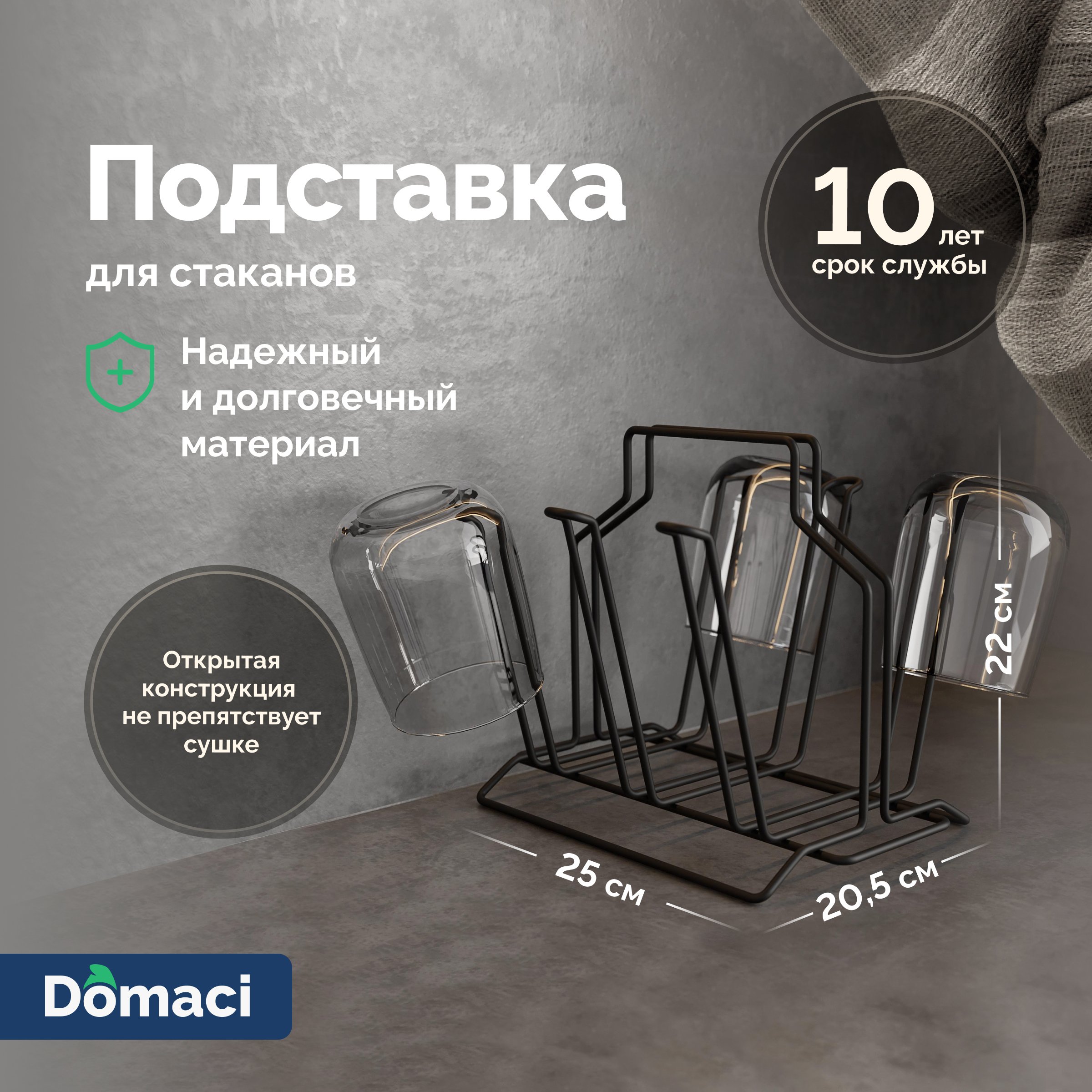 Подставка Domaci Феррара D04321 для стаканов, черный муар