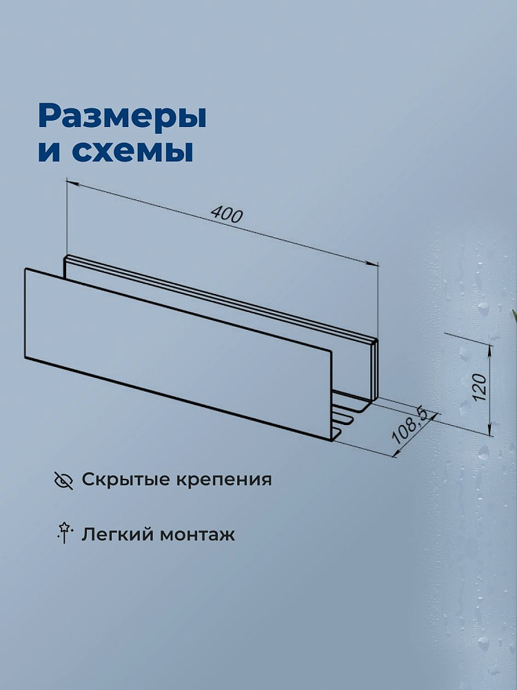 Полка оснащена скрытыми креплениями, что обеспечивает аккуратный внешний вид. В комплекте идут схемы для точной разметки, что упрощает процесс установки.