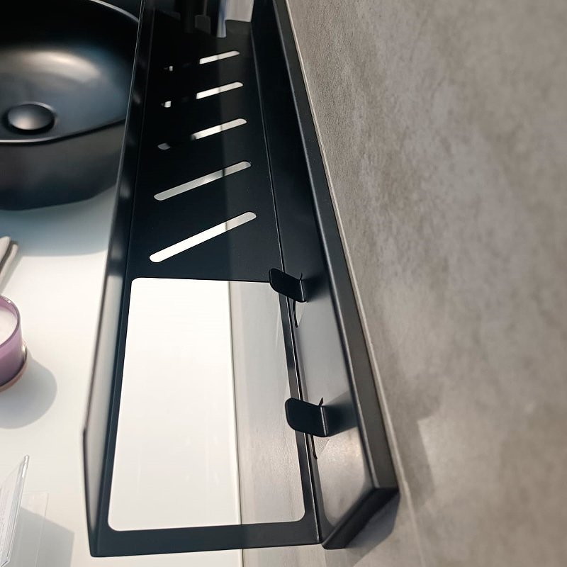 Полка экономит пространство благодаря своей компактной форме, высокий бортик обеспечивает удобное хранение предметов, предотвращая их падение, отсутствие острых краев и углов делает ее безопасной для использования.