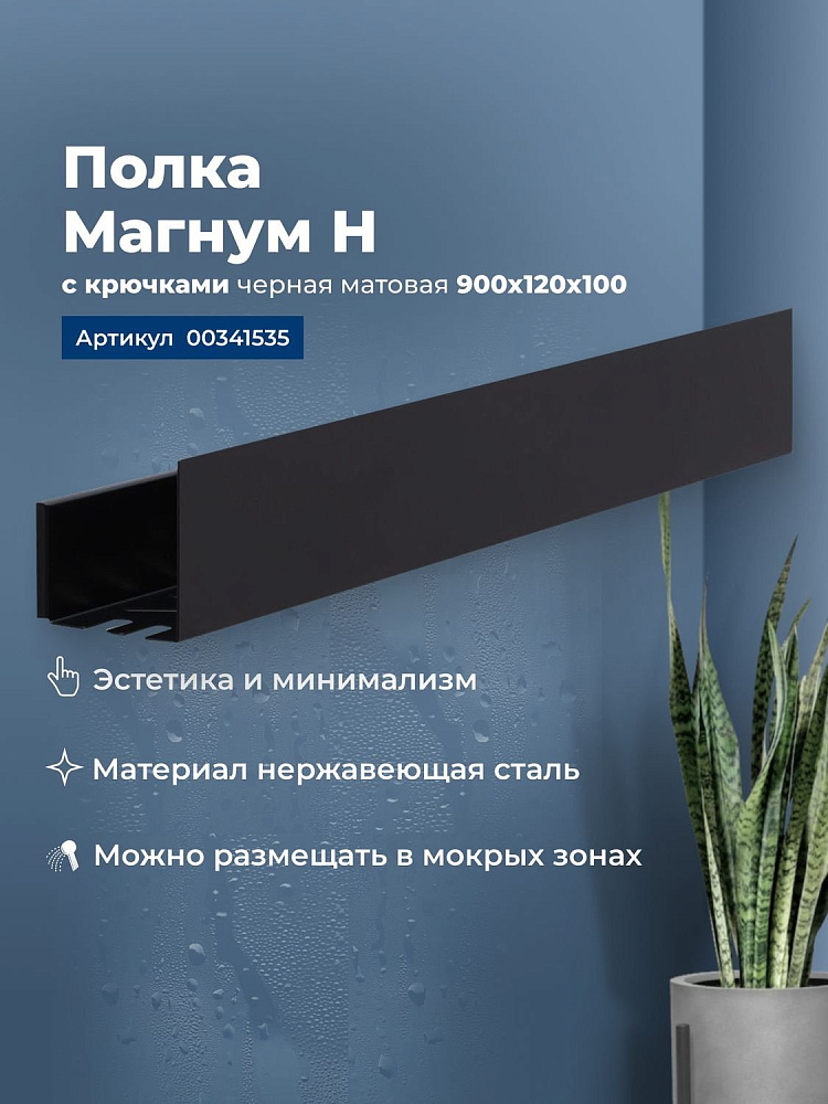 Полка Aquanet Магнум Н 90x12 черная матовая, с крючками — это компактное и стильное решение для организации пространства, которое сочетает в себе функциональность и современный дизайн. Прямоугольная форма полки (70x12 см) идеально подходит для размещения в небольших помещениях. Наличие крючков добавляет функциональности, позволяя размещать полотенца, халаты или другие аксессуары. Черное матовое покрытие придает изделию универсальность, позволяя гармонично вписаться в любой интерьер.