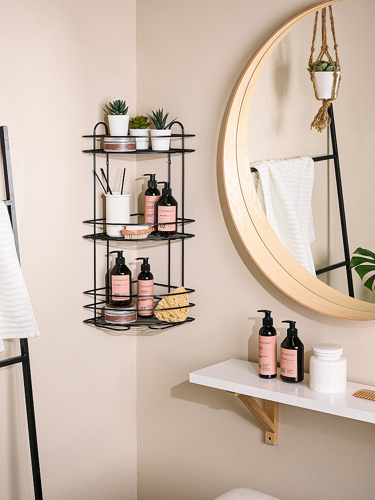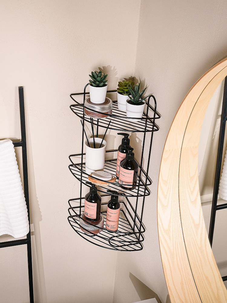 Полка для душа ЧМЗ 501-006-11 3-ярусная, угловая, черная