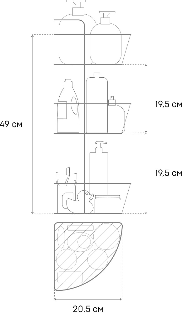 Полка для душа ЧМЗ 501-006-29 3-ярусная, угловая