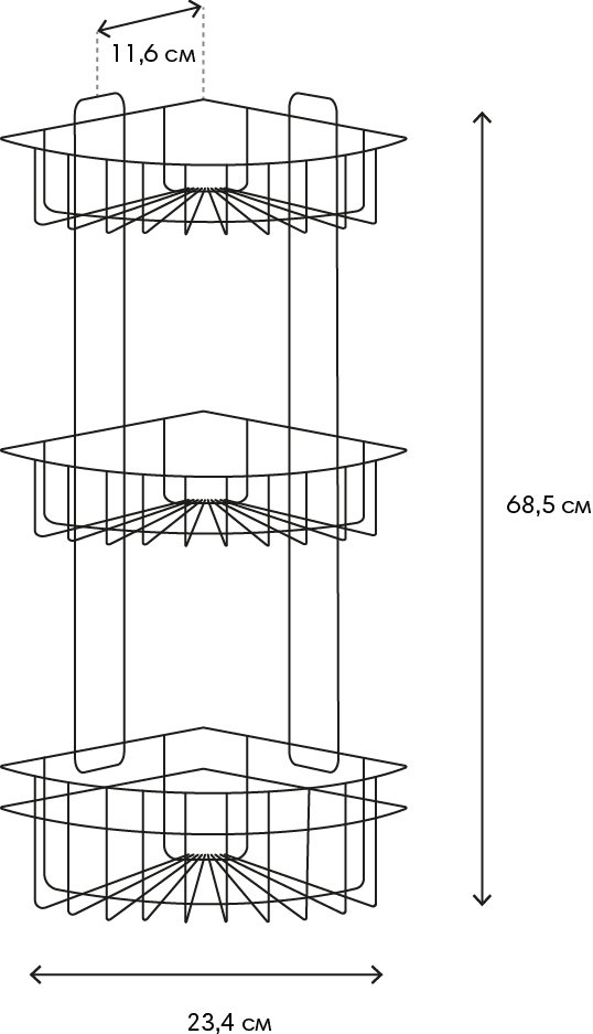 Полка для душа ЧМЗ 507-006-01 3-ярусная, угловая