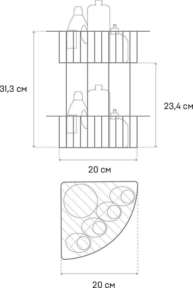 Полка для душа ЧМЗ Монолитик 505-005-01 2-ярусная, угловая