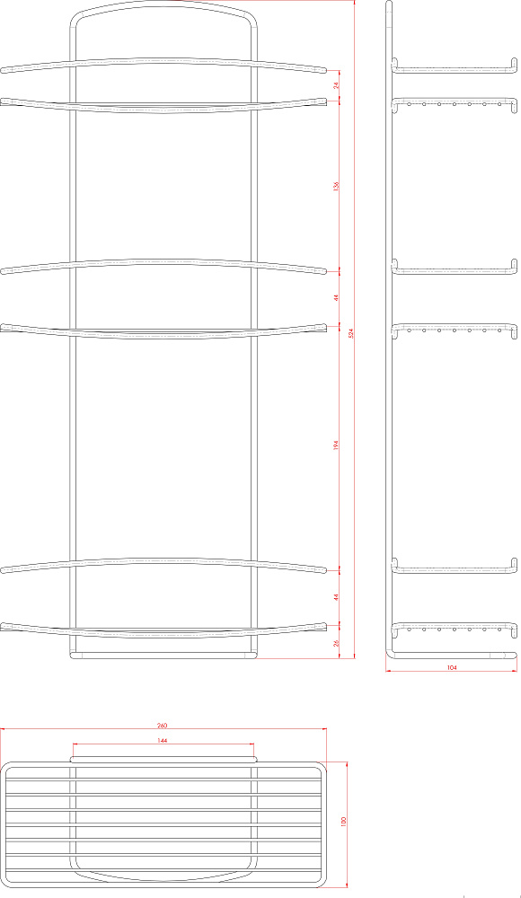 Полка для душа Metaltex Onda 46.00.33 3-ярусная, серебро