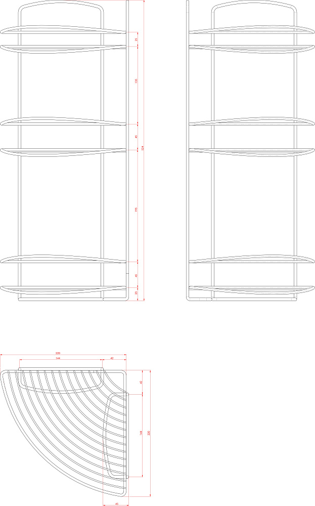 Полка для душа Metaltex Onda 46.02.33 угловая, 3-ярусная, серебро