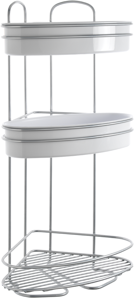 Полка для душа Metaltex Orbit 40.37.10 угловая, 3-ярусная, серебро, белая, с креплениями