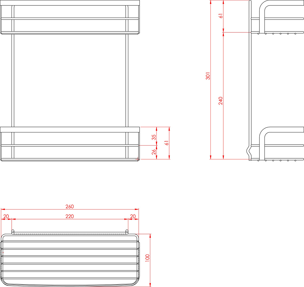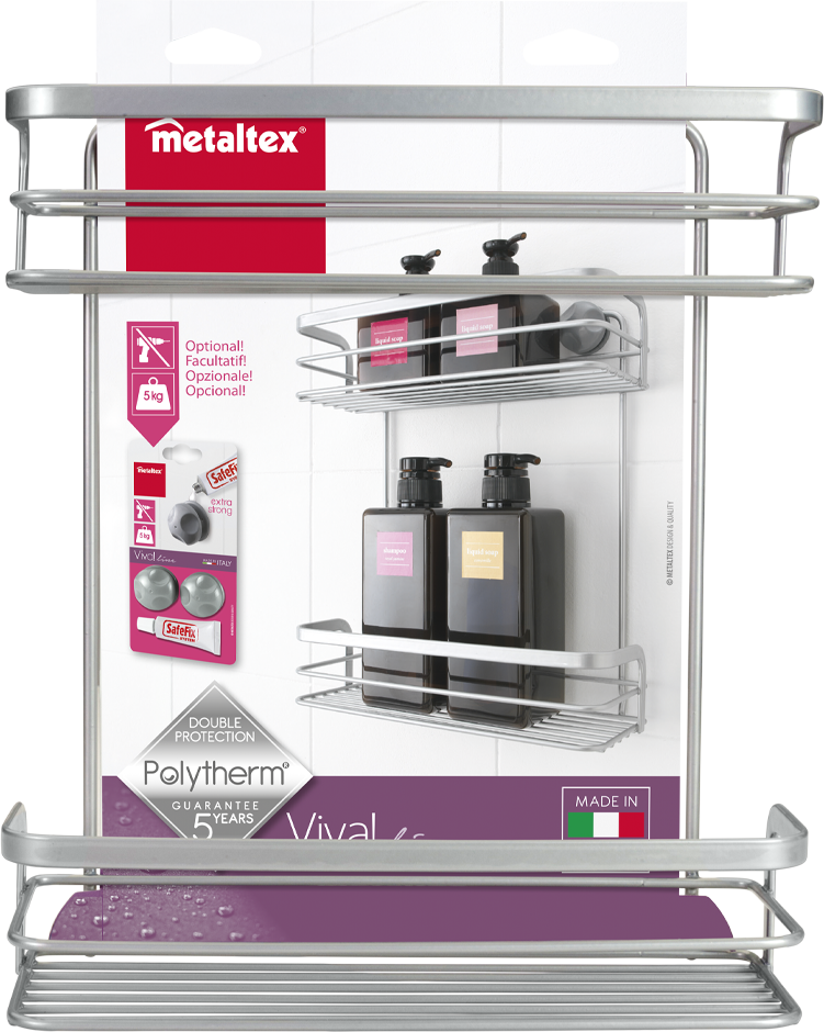 Полка для душа Metaltex Viva 40.48.14 2-ярусная, с креплениями