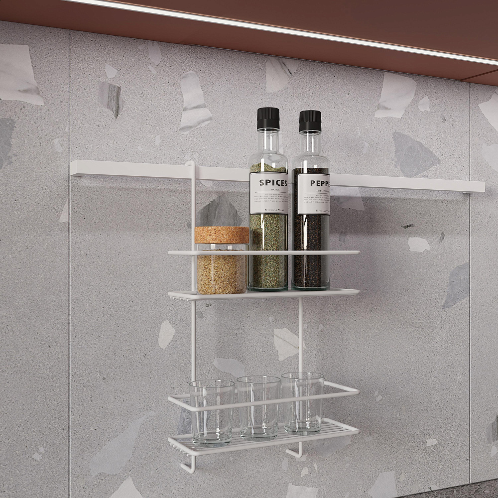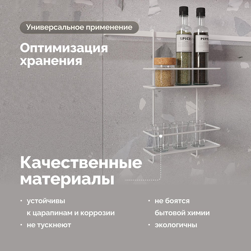 Полка на рейлинг Domaci Феррара D21346 двухъярусная, белый муар