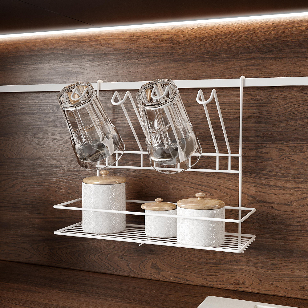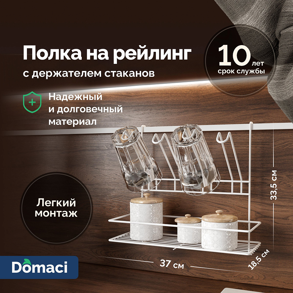 Полка на рейлинг Domaci Феррара D21350 с держателем стаканов, белый муар