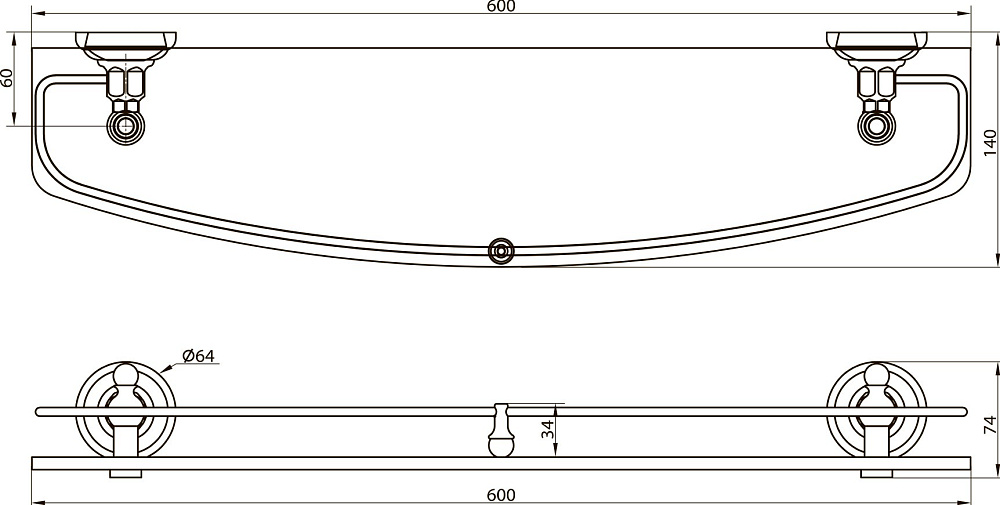 Полка под зеркало Elghansa Praktic PRK-560-Gold 60 см, золото