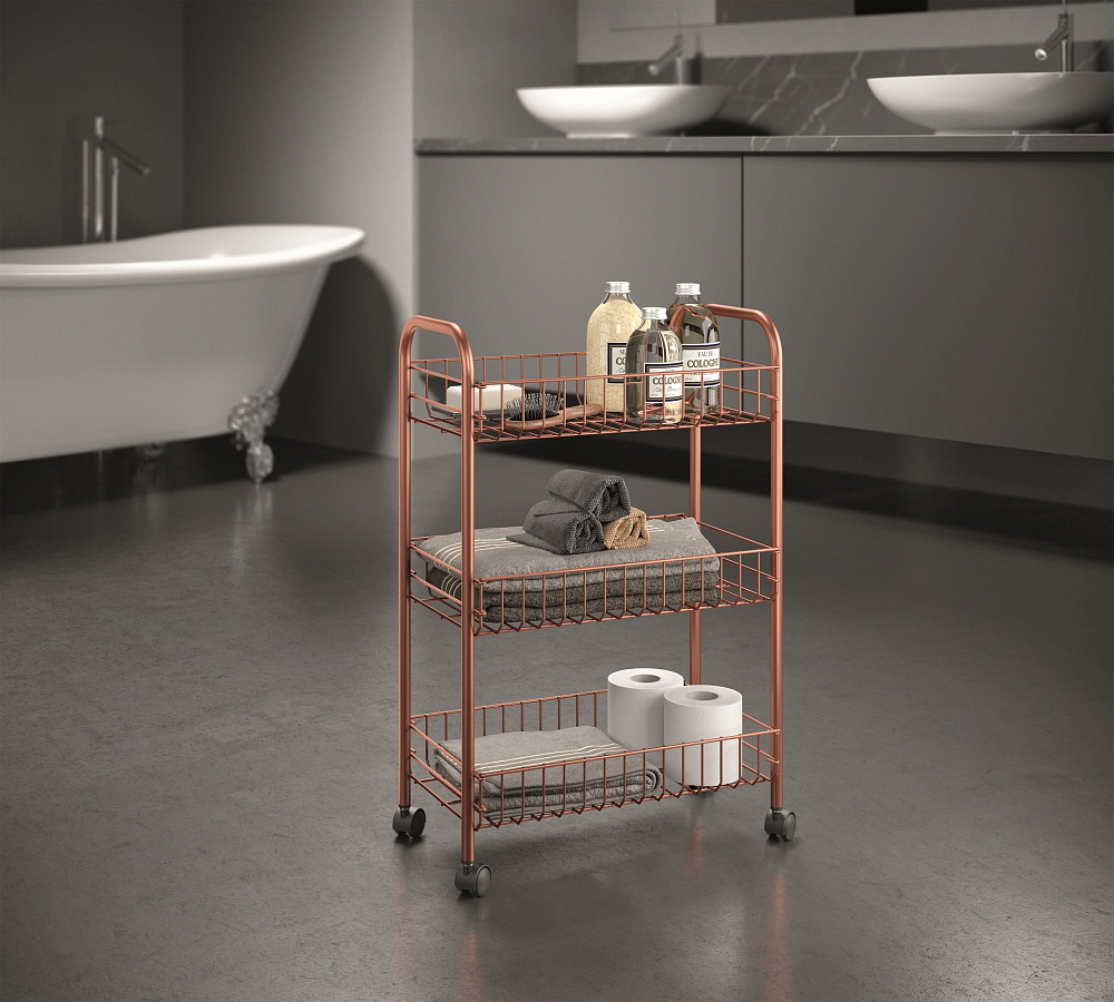 Стеллаж для ванной Metaltex Lugano 34.44.03 напольный, матовая медь, с колесиками