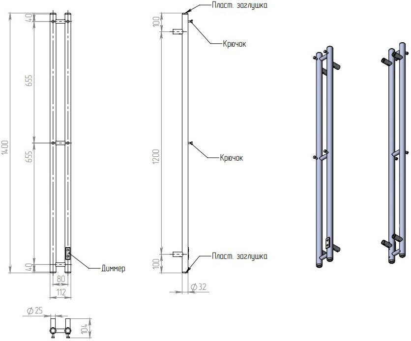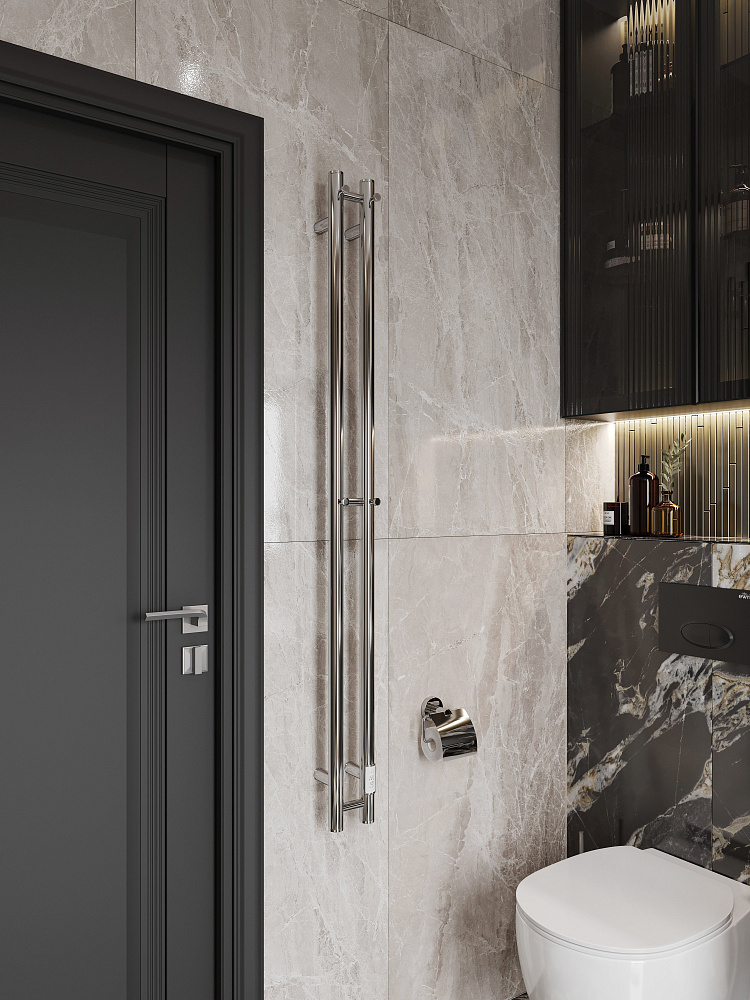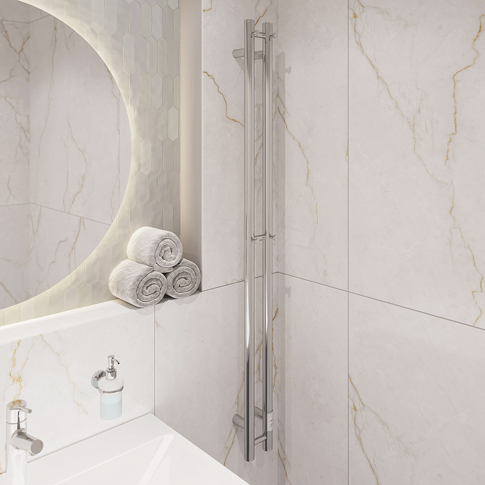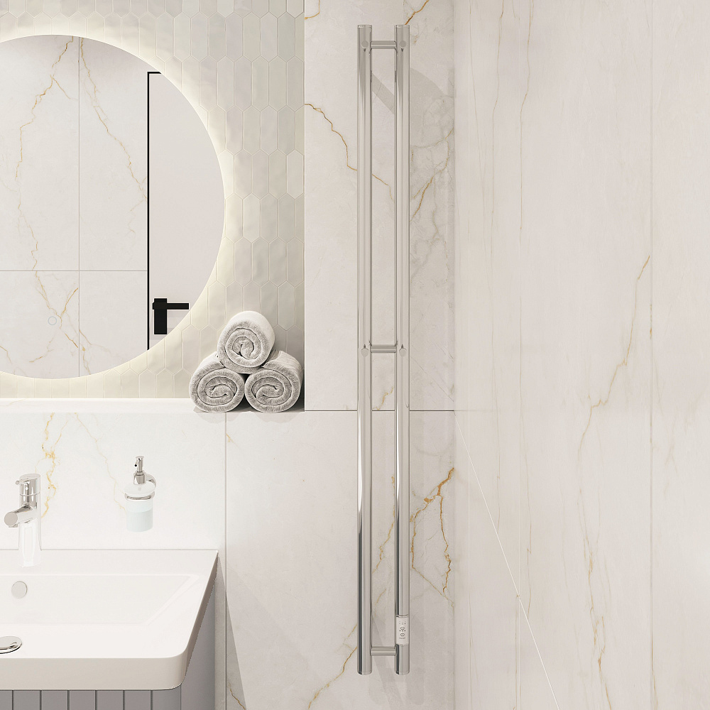 Полотенцесушитель электрический EWRIKA Пенелопа Х2 140x10 см, подключение справа, слева, скрытое подключение справа, хром, I-образный