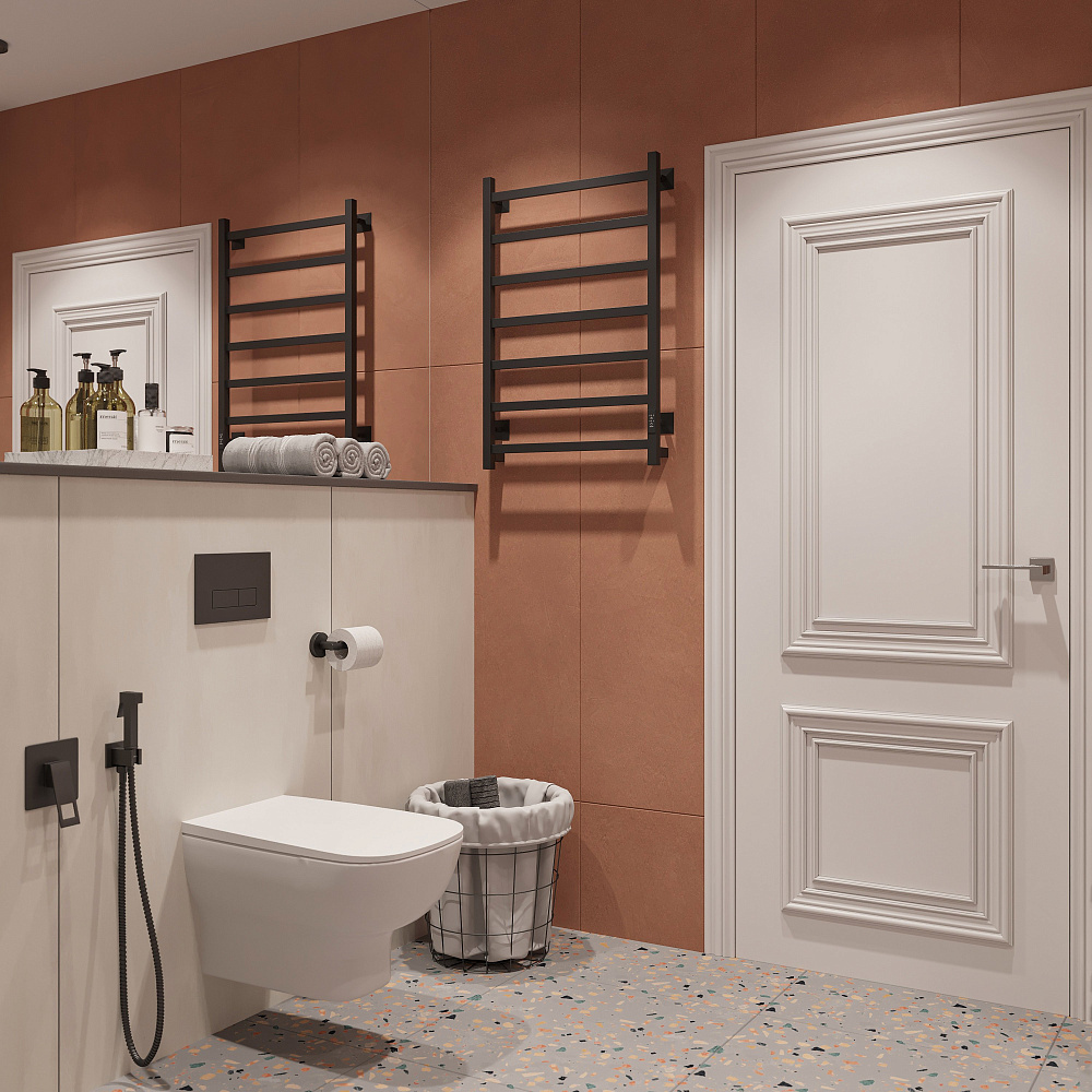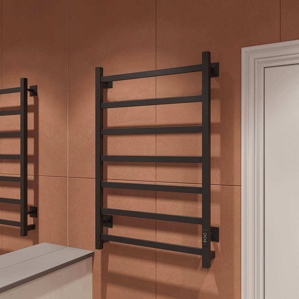 Электрический полотенцесушитель EWRIKA Пенелопа КВ7 80х50 в чёрном цвете — это не только функциональный, но и стильный элемент ванной комнаты. Изготовленный из углеродистой стали, он отличается высокой прочностью и долговечностью. Благодаря использованию греющего кабеля, аналогичного тёплому полу, тепло равномерно распределяется по всей поверхности изделия. Этот кабель заправлен внутрь каждой трубы и обеспечивает постоянную передачу тепла. Включение полотенцесушителя гарантирует поддержание температуры в диапазоне от 45 до 55 градусов, что создаёт комфортные условия и способствует быстрому высыханию полотенец. EWRIKA Пенелопа КВ7 80х50 станет не только практичным решением для вашей ванной комнаты, но и стильным дополнением к её дизайну.