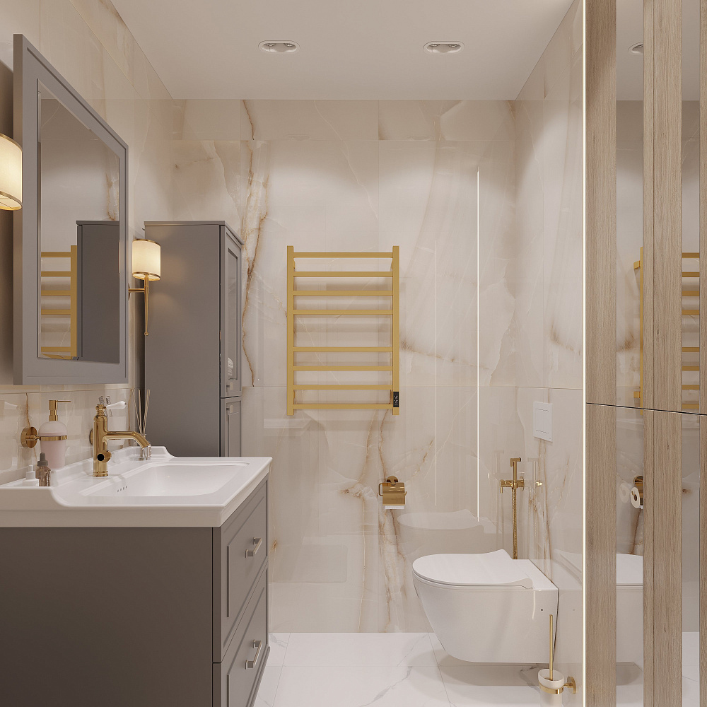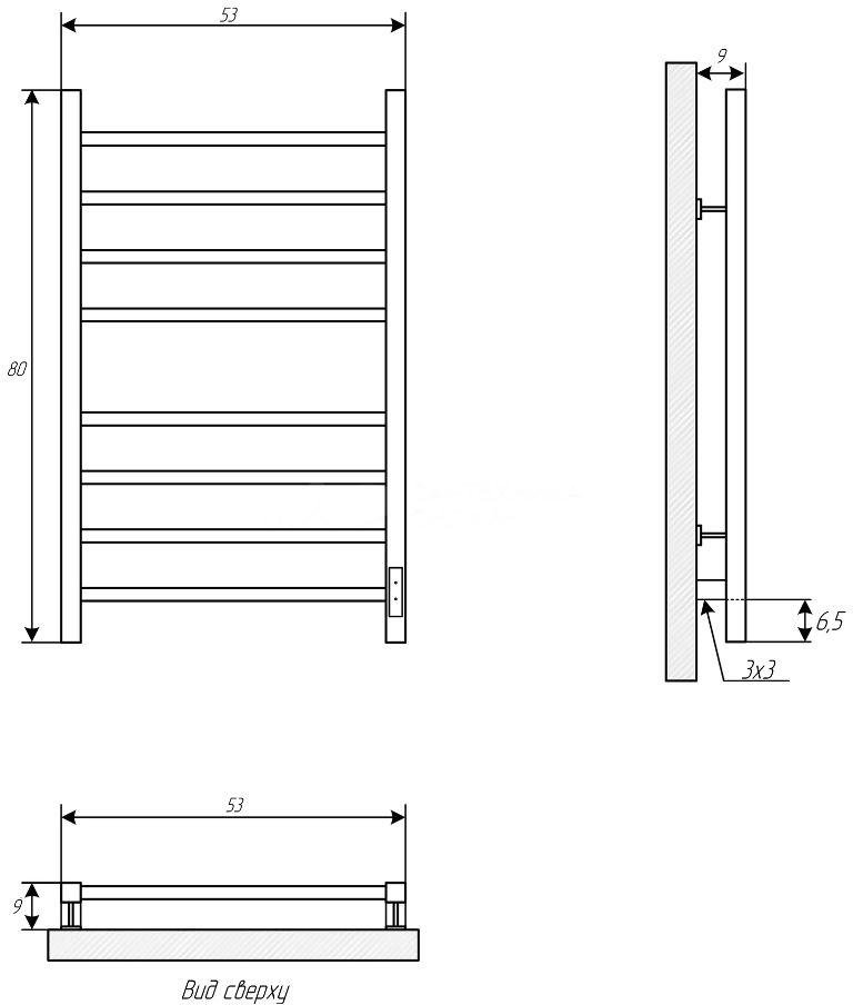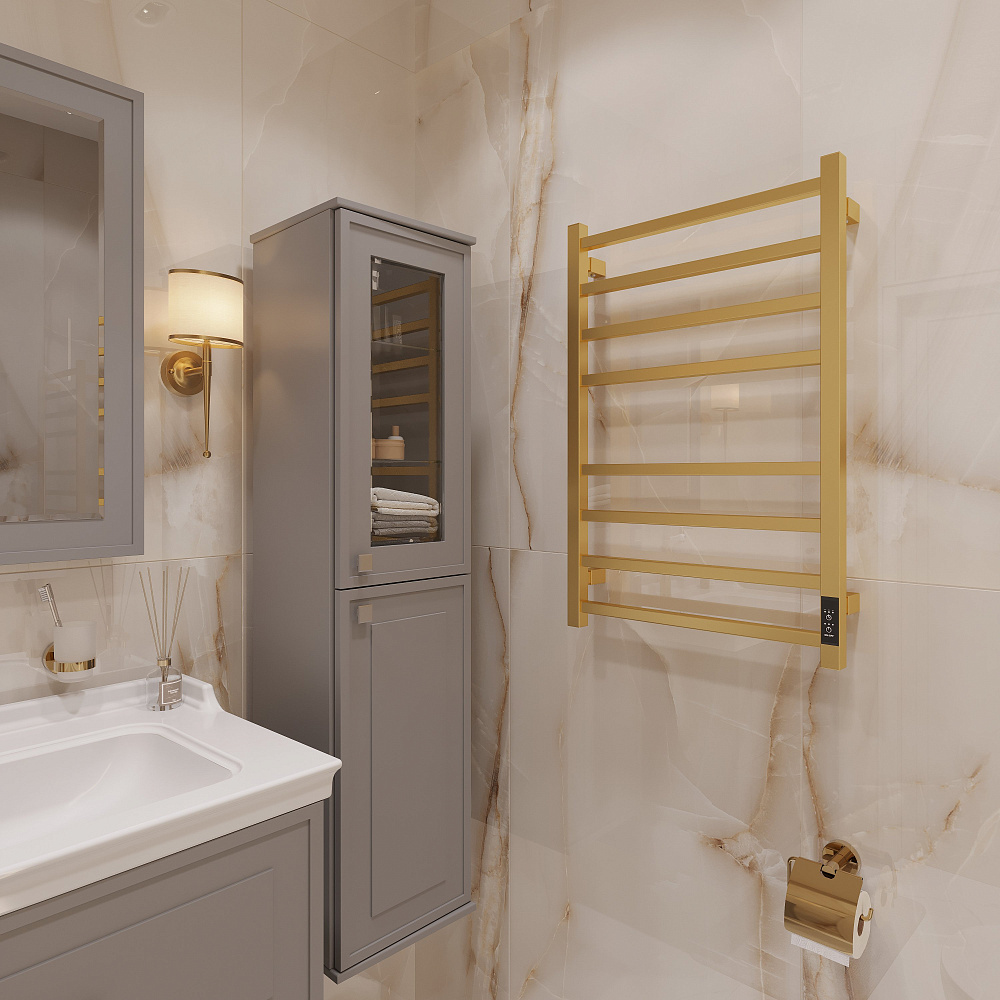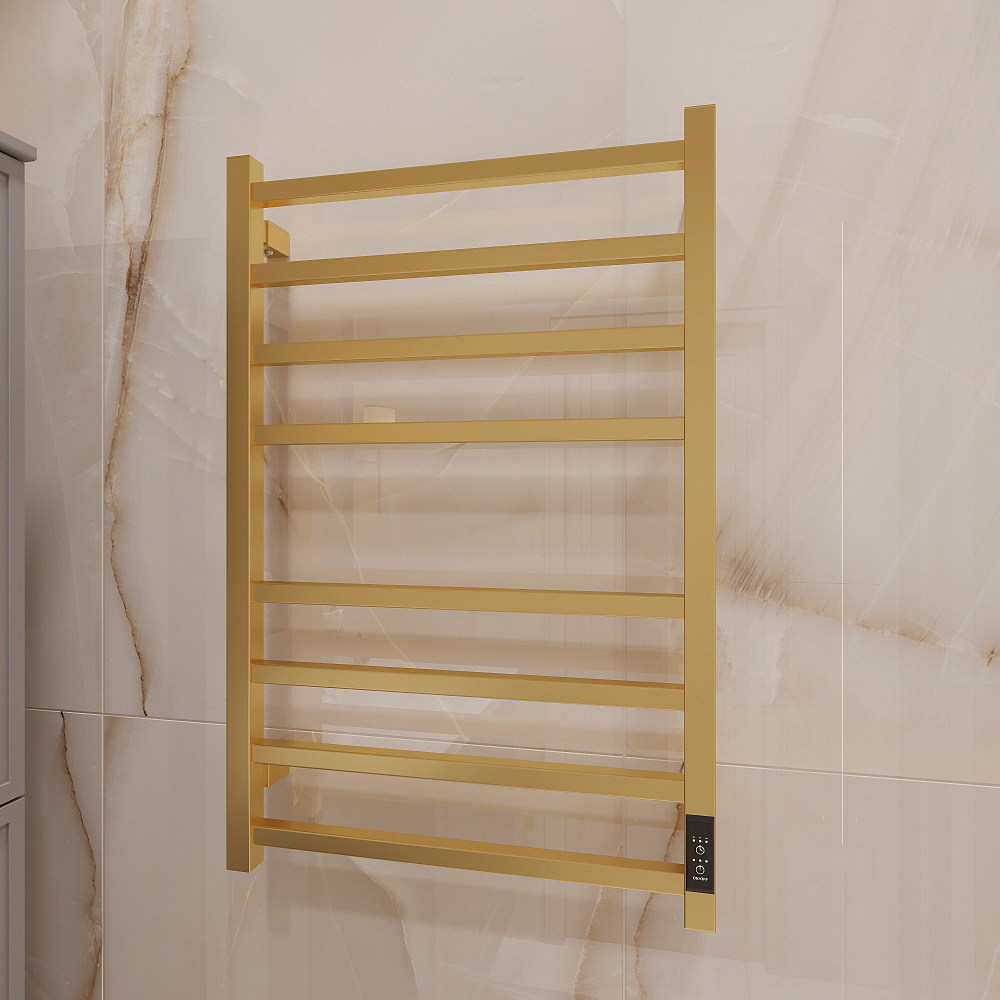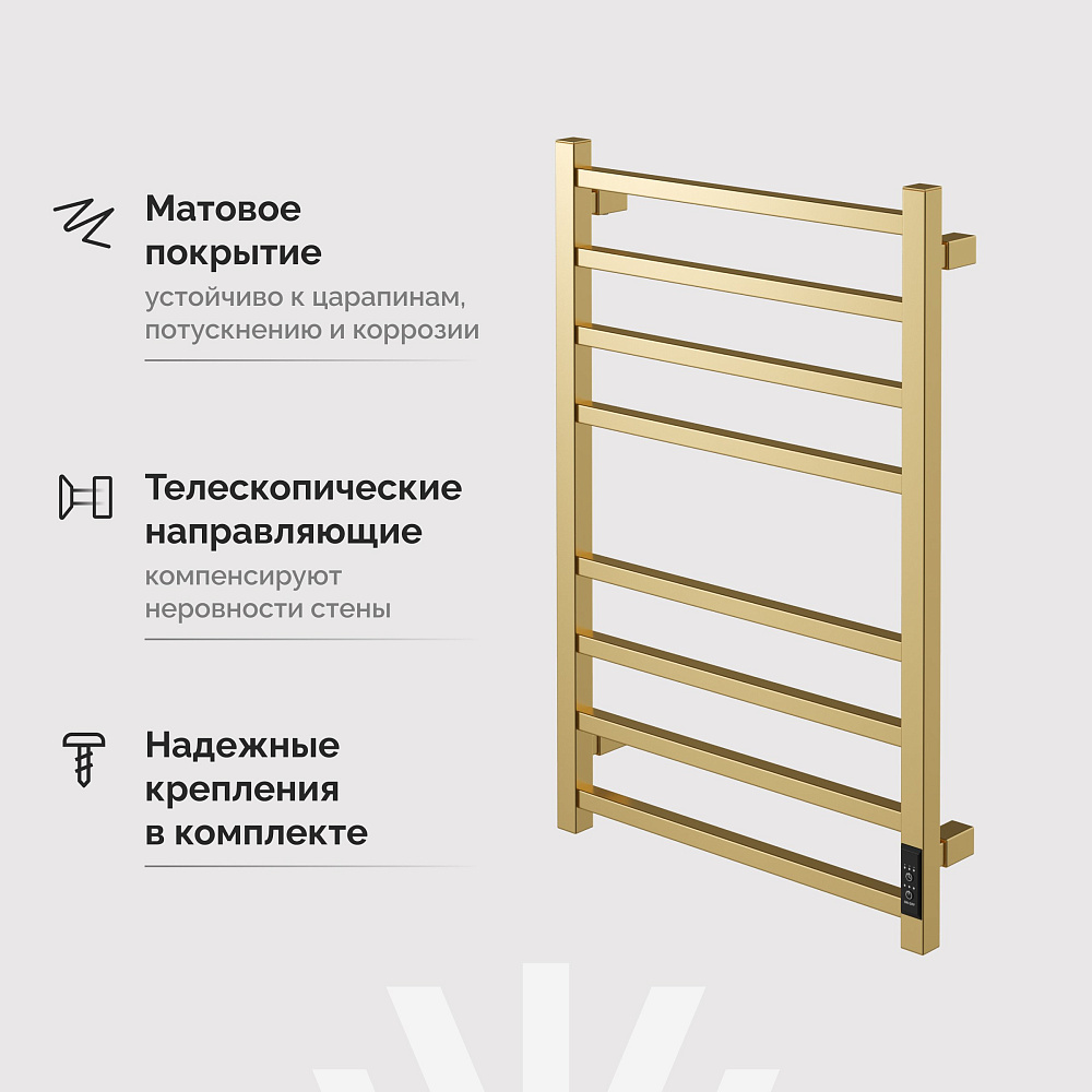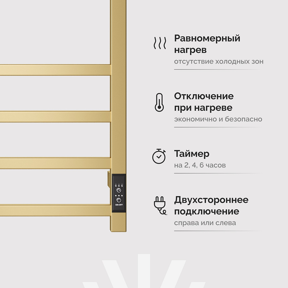 Полотенцесушитель электрический EWRIKA Пенелопа L2 80x55 см, подключение справа, слева, скрытое подключение справа, матовый золотой, лесенка