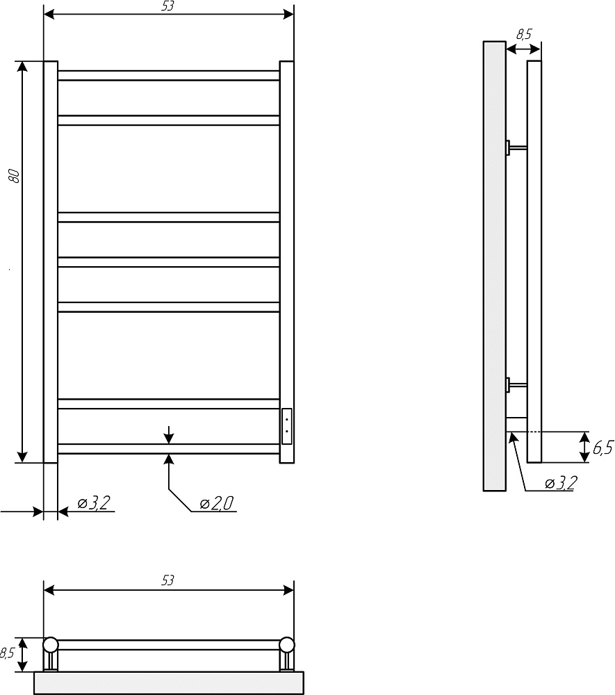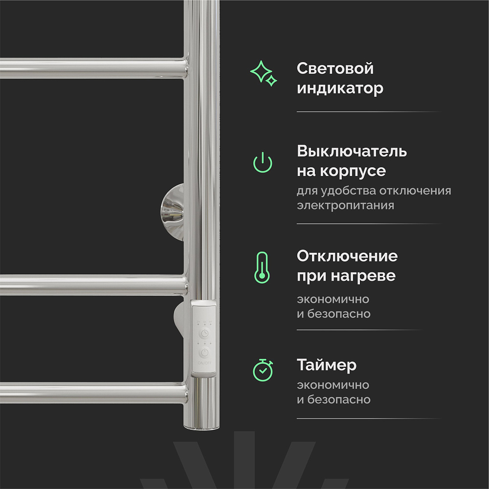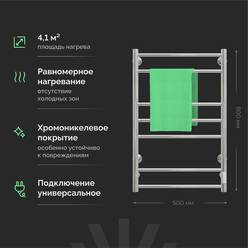 Полотенцесушитель электрический EWRIKA Сафо АС3 80x55 см, подключение справа, слева, глянцевый хром, лесенка