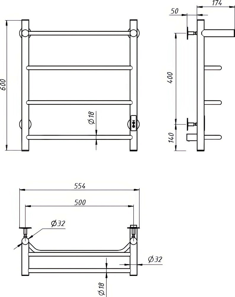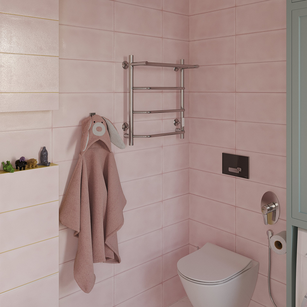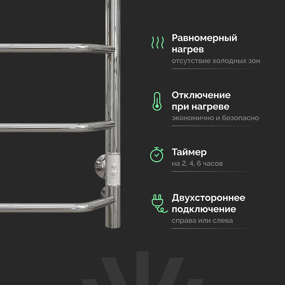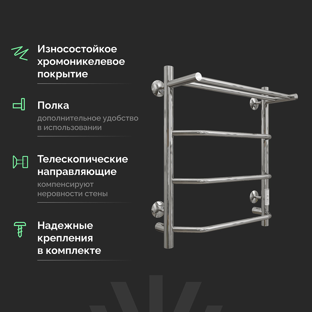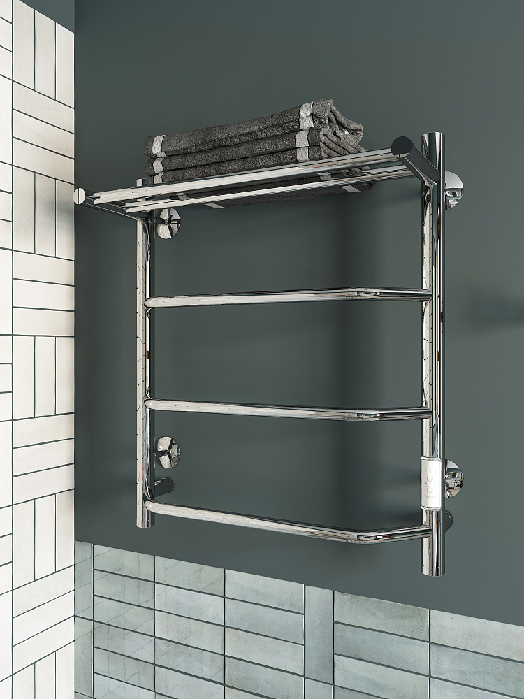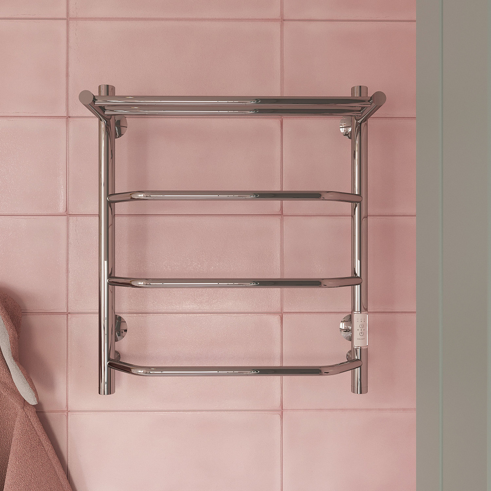 Полотенцесушитель электрический EWRIKA Сафо FT 60x55 см, подключение справа, слева, глянцевый хром, лесенка, с полкой