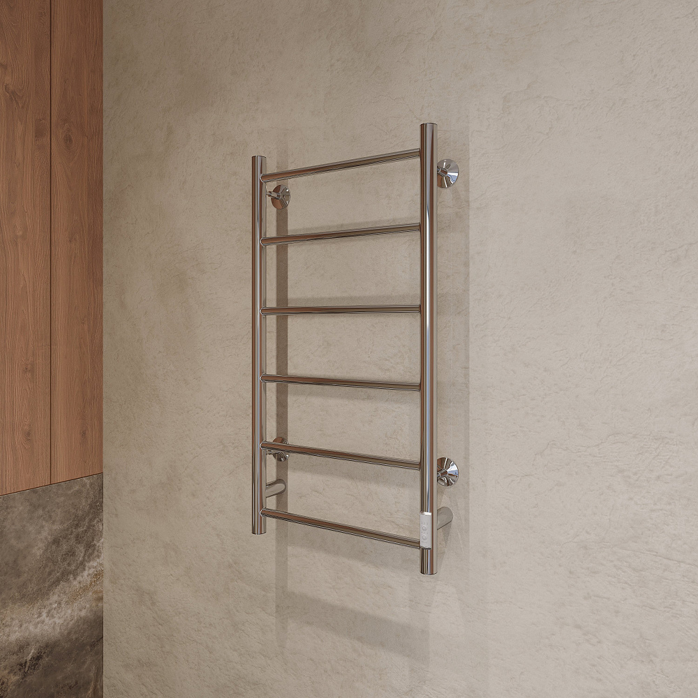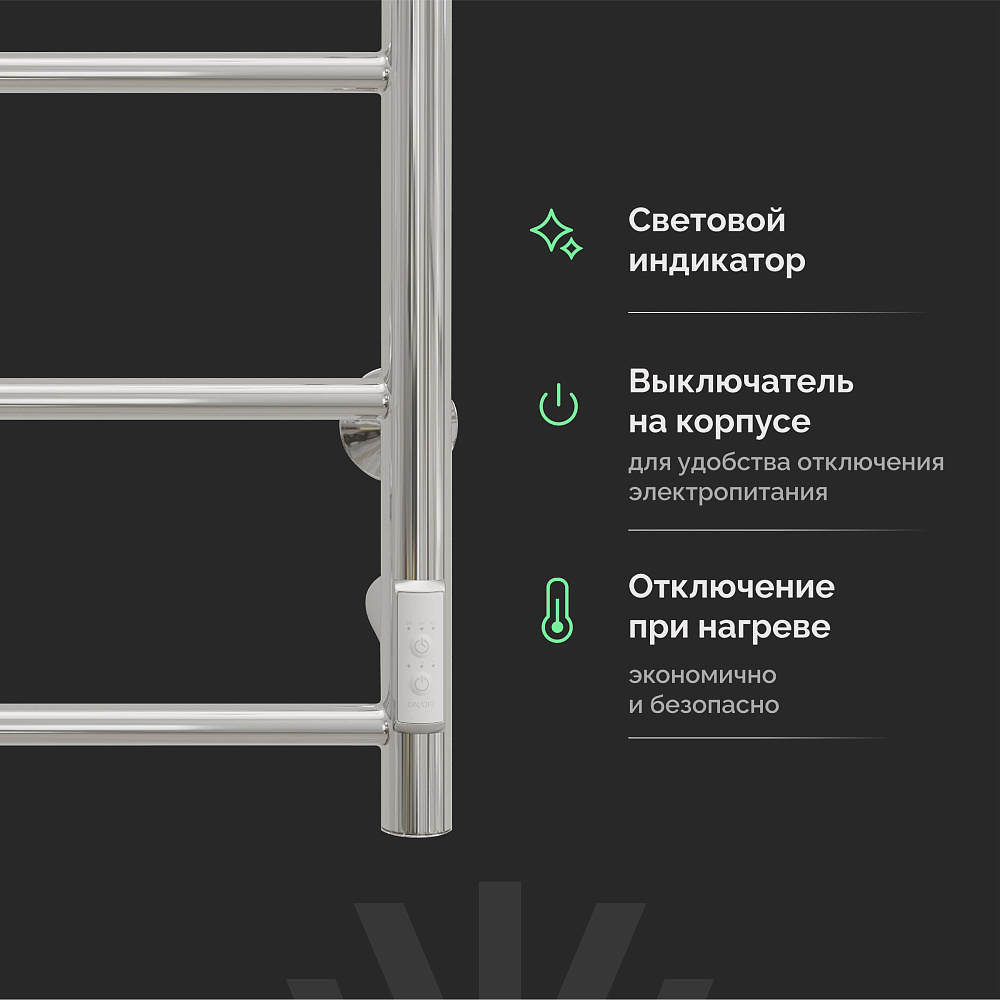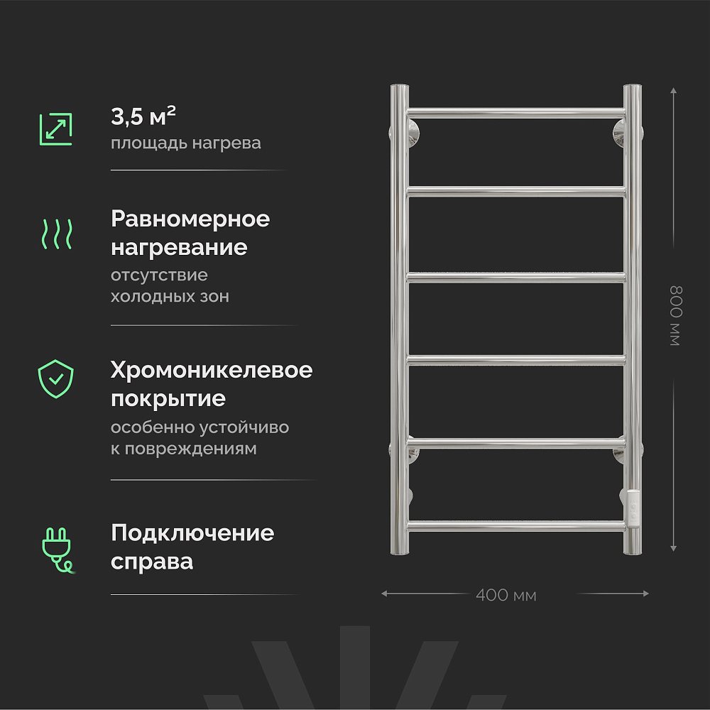 Полотенцесушитель электрический EWRIKA Сафо PN 80x45 см, подключение справа, слева, скрытое подключение справа, глянцевый хром, лесенка