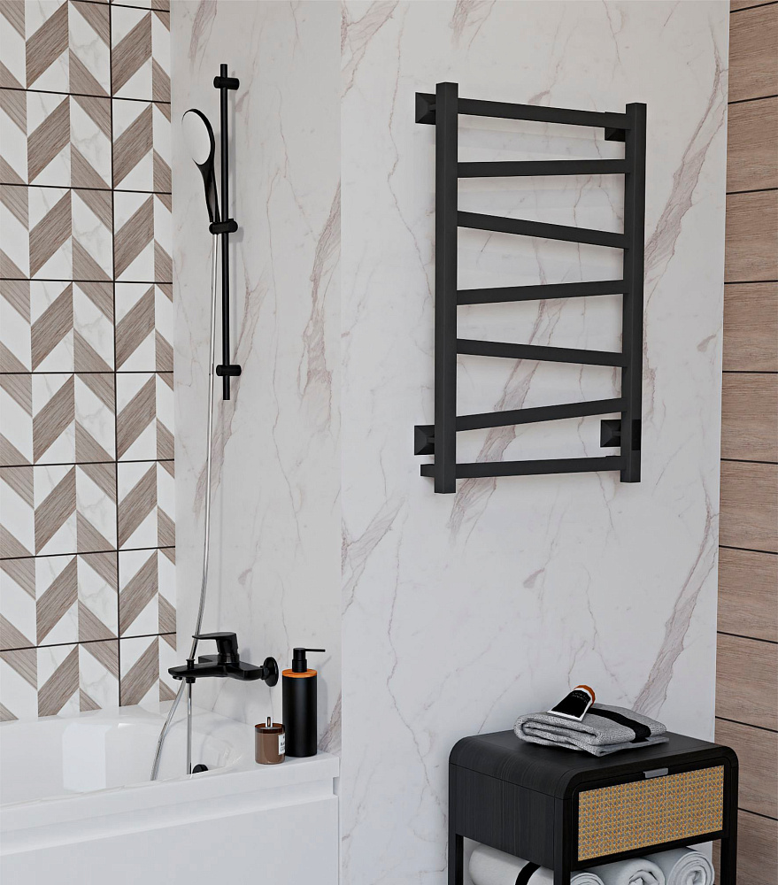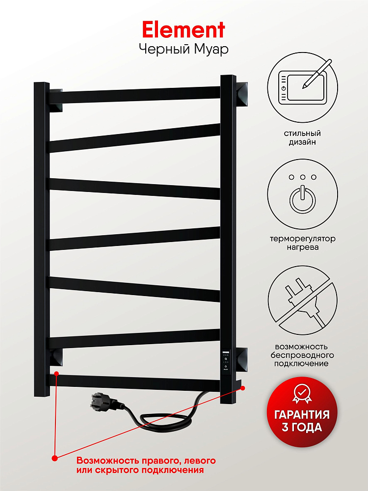 Отзывы о Полотенцесушитель электрический Indigo Element LCEEPF80-50BRRt 80x55 см, подключение справа, слева, черный муар, лесенка, из стали