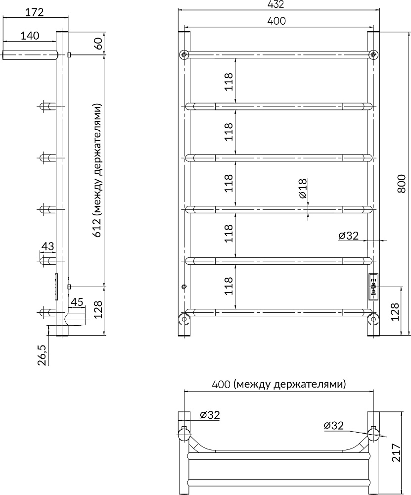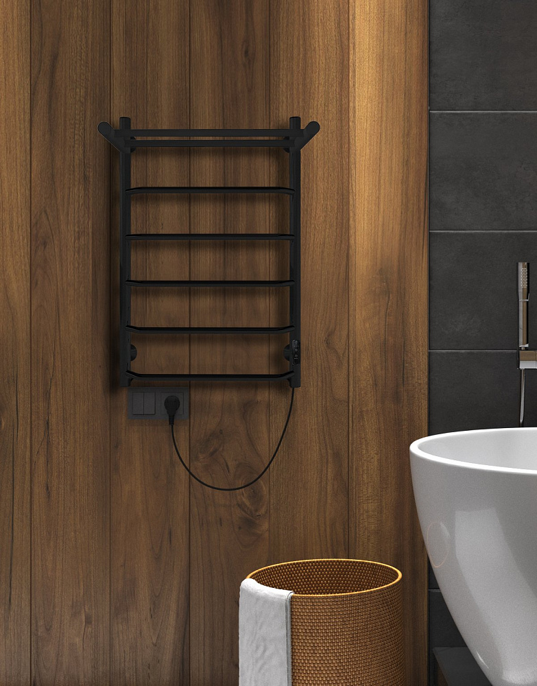 Отзывы о Полотенцесушитель электрический Indigo Roof Lux LCRLE80-40PBRRt 80x45 см, подключение справа, слева, черный муар, лесенка, с полкой