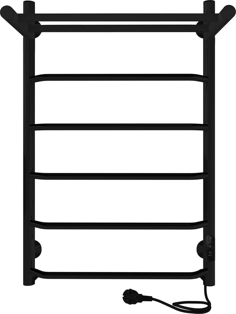 Полотенцесушитель электрический Indigo Roof Lux LCRLE80-40PBRRt 80x45 см, подключение справа, слева, черный муар, лесенка, с полкой