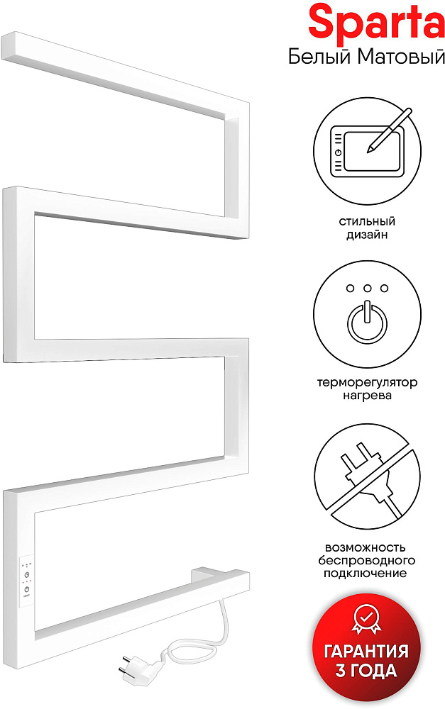 Отзывы о Полотенцесушитель электрический Indigo Sparta DGS80-50WMRt 85x50 см, подключение справа, матовый белый, S-образный, из стали