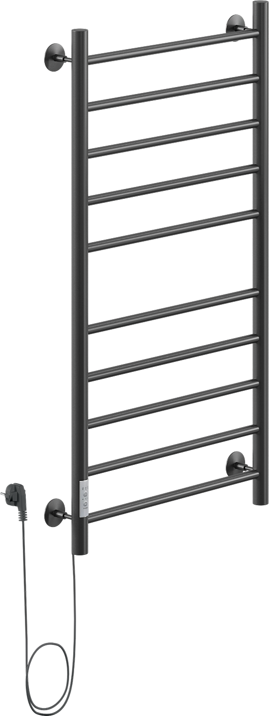 Полотенцесушитель электрический Ника Way 2 100x50 см, подключение слева, скрытое подключение слева, матовый черный, лесенка, из стали