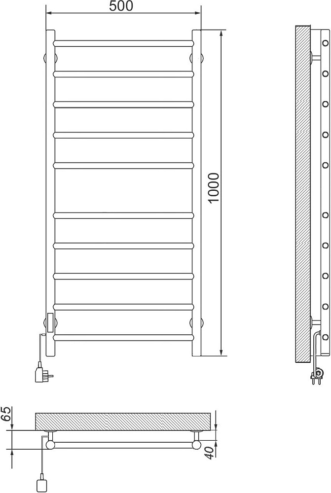 Отзывы о Полотенцесушитель электрический Ника Way 2 100x50 см, подключение слева, скрытое подключение слева, матовый черный, лесенка, из стали