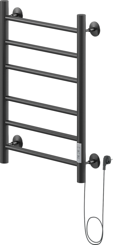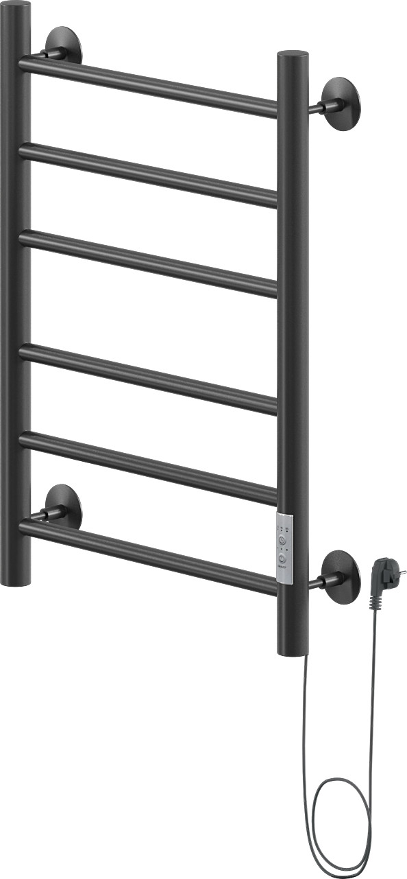 Полотенцесушитель электрический Ника Way 2 60x45 см, подключение справа, скрытое подключение справа, матовый черный, лесенка, из стали
