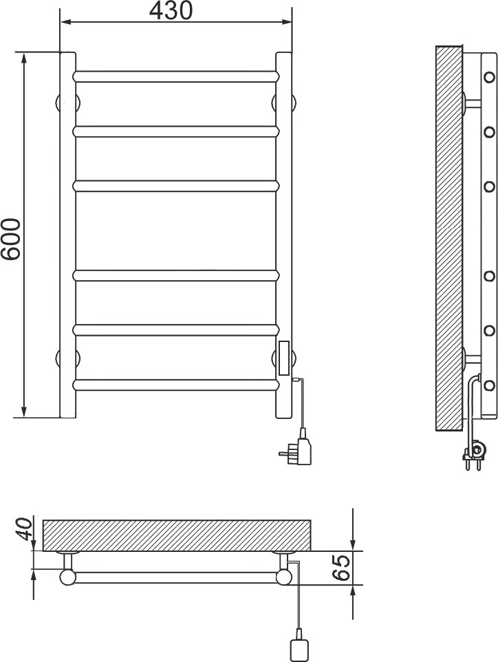 Отзывы о Полотенцесушитель электрический Ника Way 2 60x45 см, подключение справа, скрытое подключение справа, матовый черный, лесенка, из стали