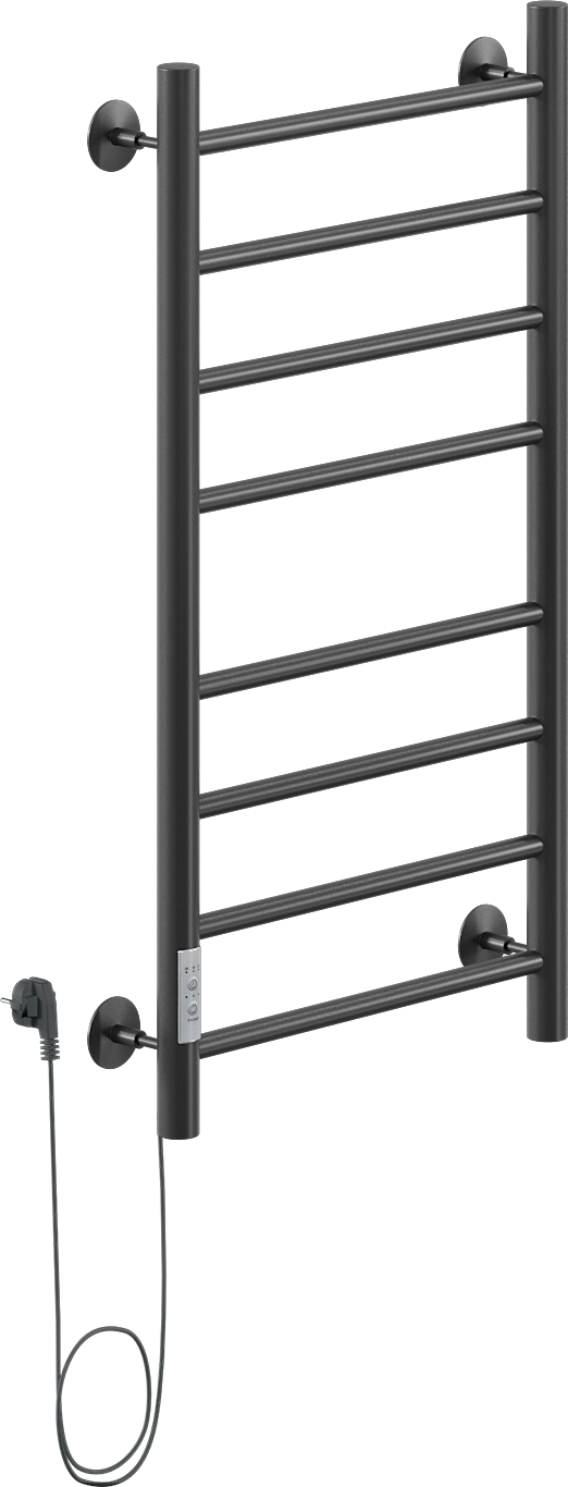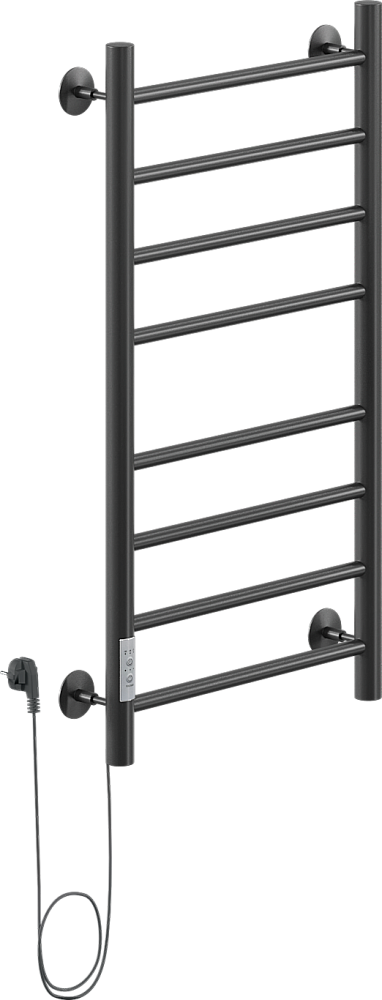 Полотенцесушитель электрический Ника Way 2 80x40 см, подключение слева, скрытое подключение слева, матовый черный, лесенка, из стали