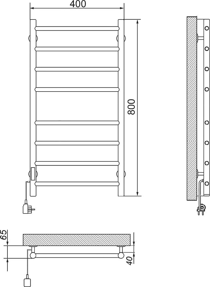 Отзывы о Полотенцесушитель электрический Ника Way 2 80x40 см, подключение слева, скрытое подключение слева, матовый черный, лесенка, из стали