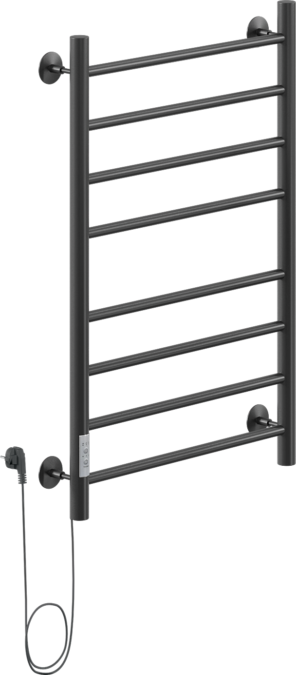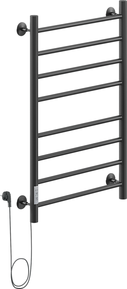 Полотенцесушитель электрический Ника Way 2 80x55 см, подключение слева, скрытое подключение слева, матовый черный, лесенка, из стали