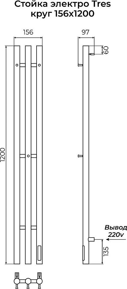 Отзывы о Полотенцесушитель электрический Terminus Tres 4670078561831 120x15 см, скрытое подключение, нержавеющая сталь полированная, лесенка, с полкой