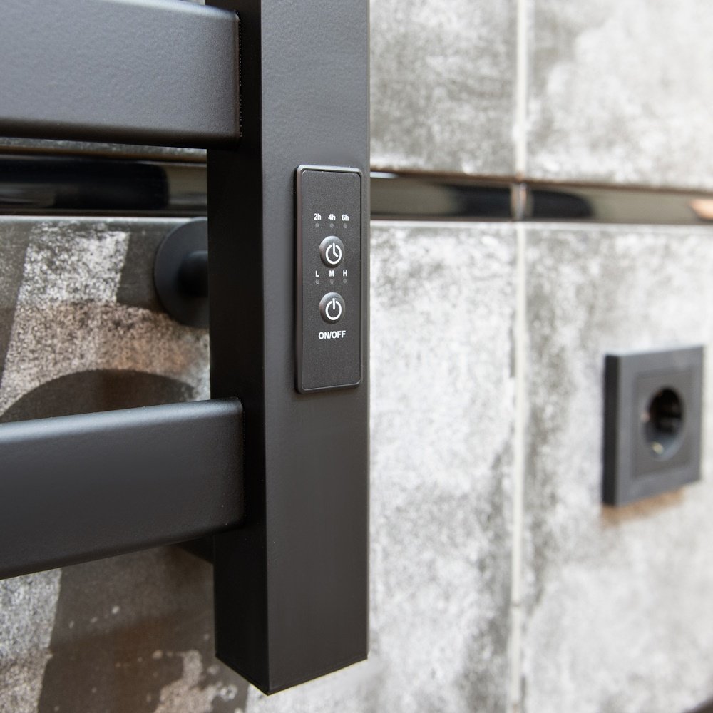 Отзывы о Полотенцесушитель электрический Тругор Диана Пэк сп 1 80x50 см, подключение справа, слева, глянцевый черный, лесенка, алюминиевый
