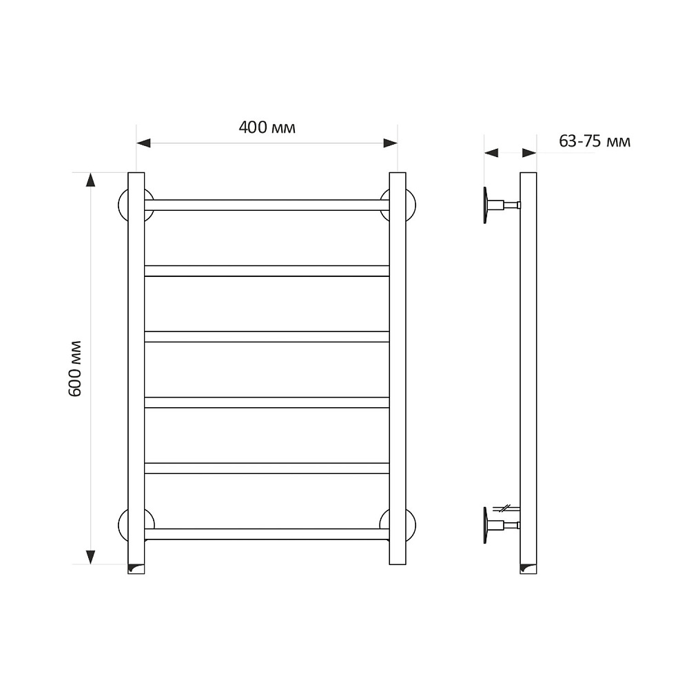 Полотенцесушитель MIXLINE VEGA 60х40 (кноп выключатель, 222 Вт, 6 перекладин, правый) электрический