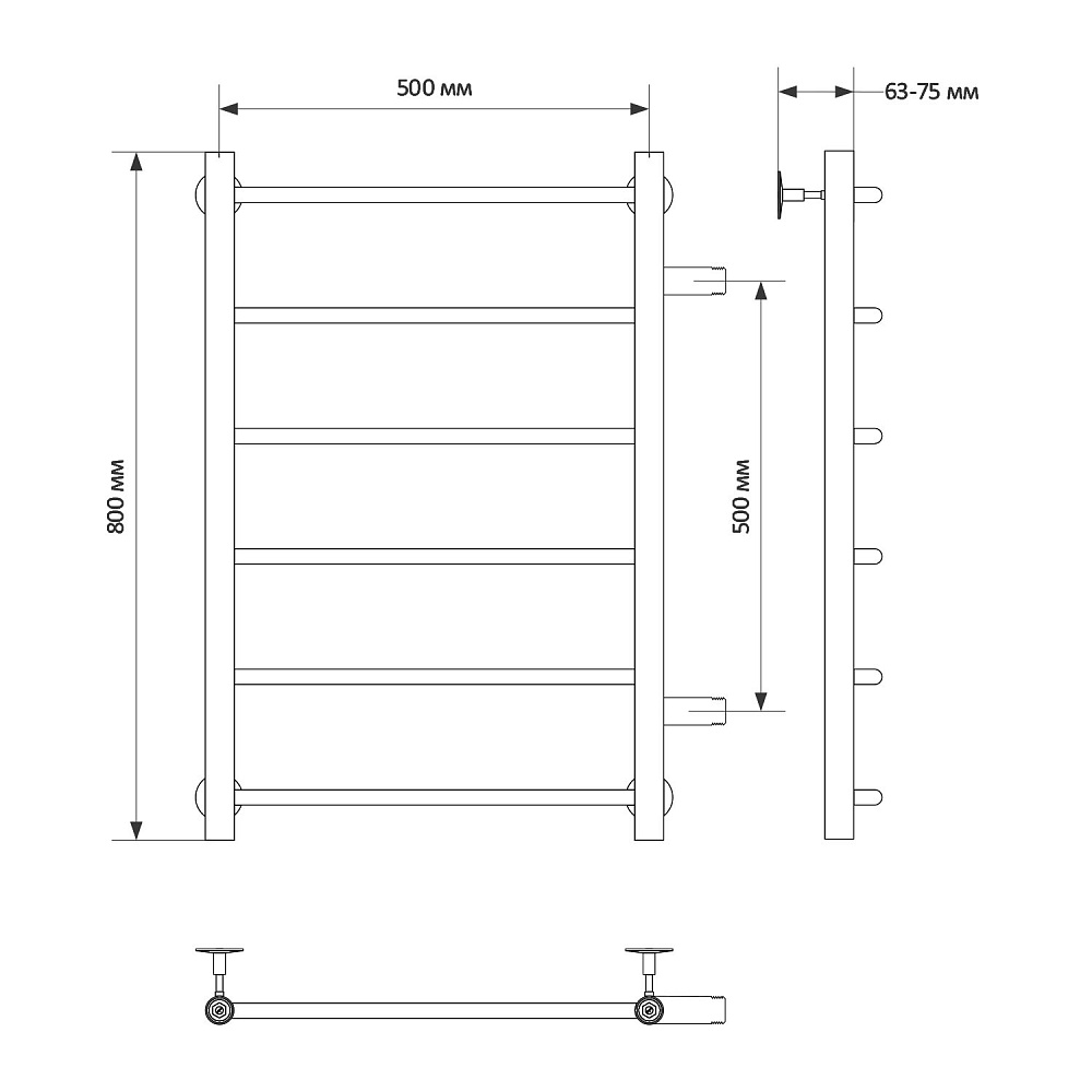 Полотенцесушитель MIXLINE VEGA 80х50х50 (1'' НР, 6 перекладин, боковое подкл) водяной