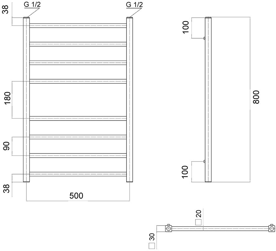 Отзывы о Полотенцесушитель водяной Domoterm Квадро П8 80x55 см, глянцевый хром, лесенка