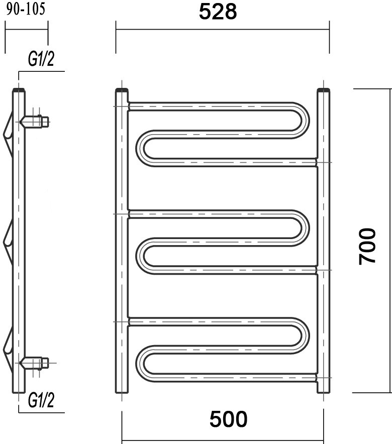 Полотенцесушитель водяной Domoterm Офелия П9 70x55 см, глянцевый хром, лесенка