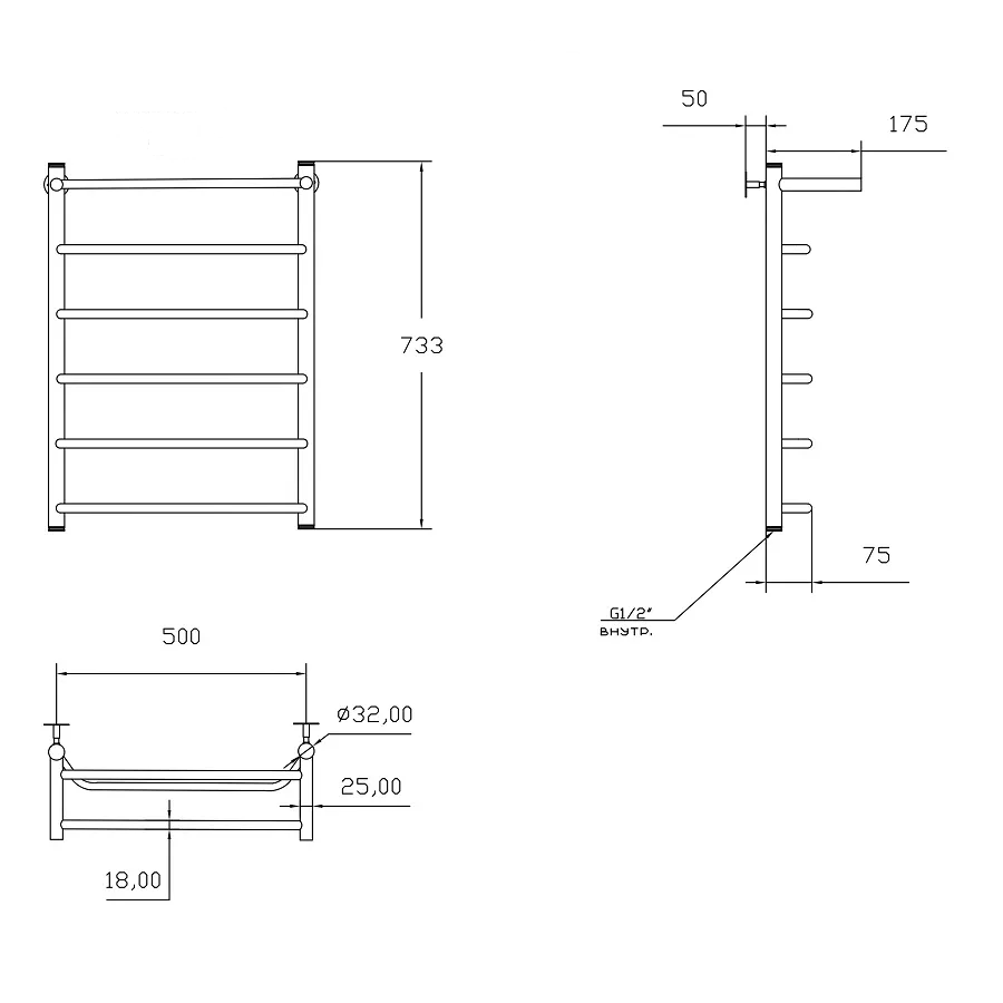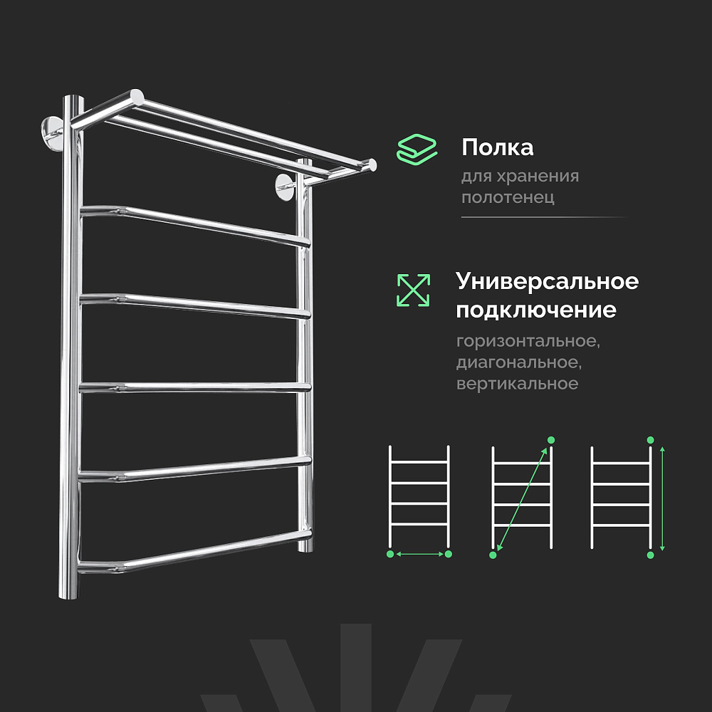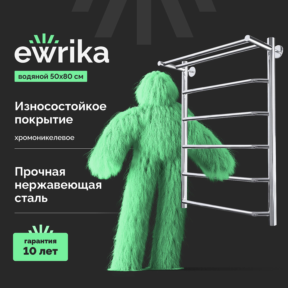 Полотенцесушитель водяной EWRIKA Сафо FТ 80х50, с полкой, хром