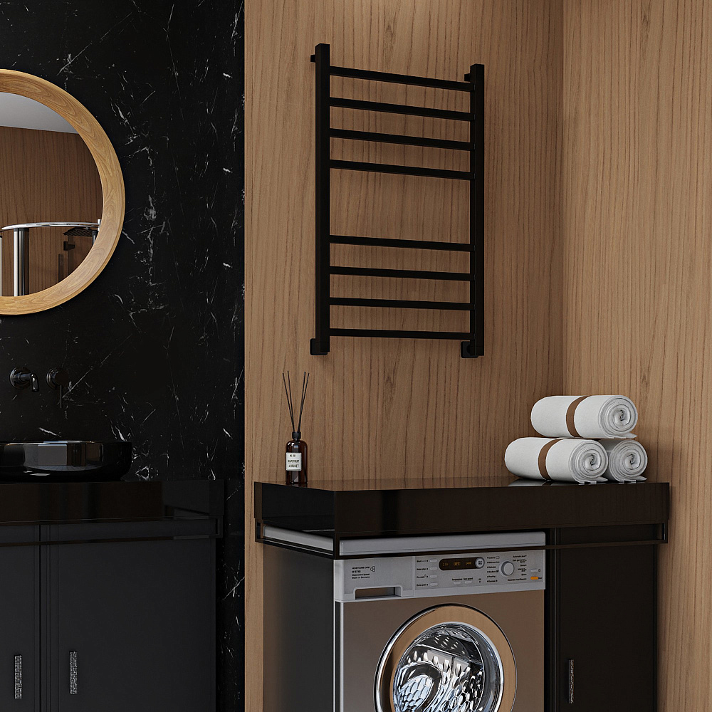 Отзывы о Полотенцесушитель водяной Indigo Aletto LALWPF80-50BR 85x55 см, черный муар, лесенка