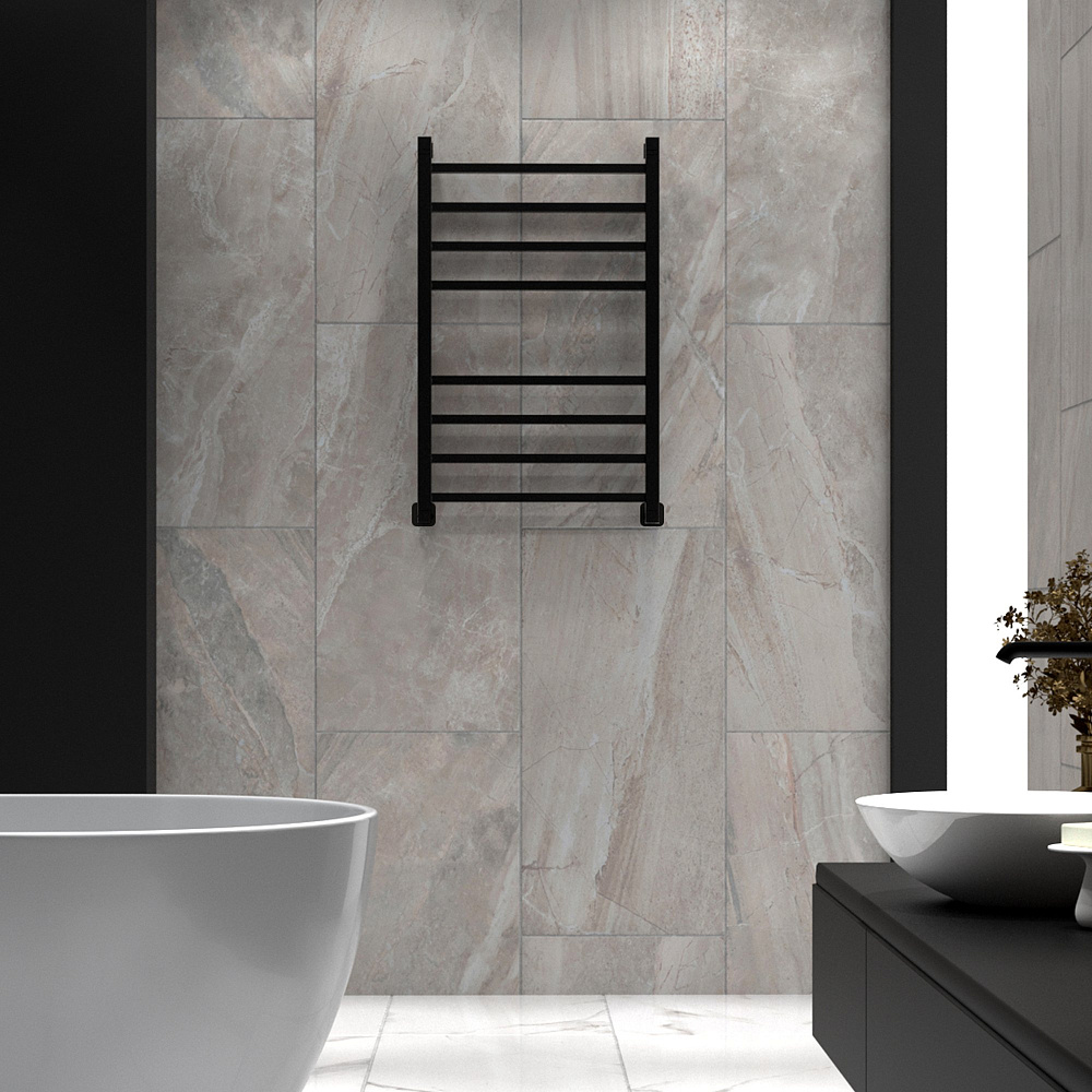 Полотенцесушитель водяной Indigo Aletto LALWPF80-50BR 85x55 см, черный муар, лесенка