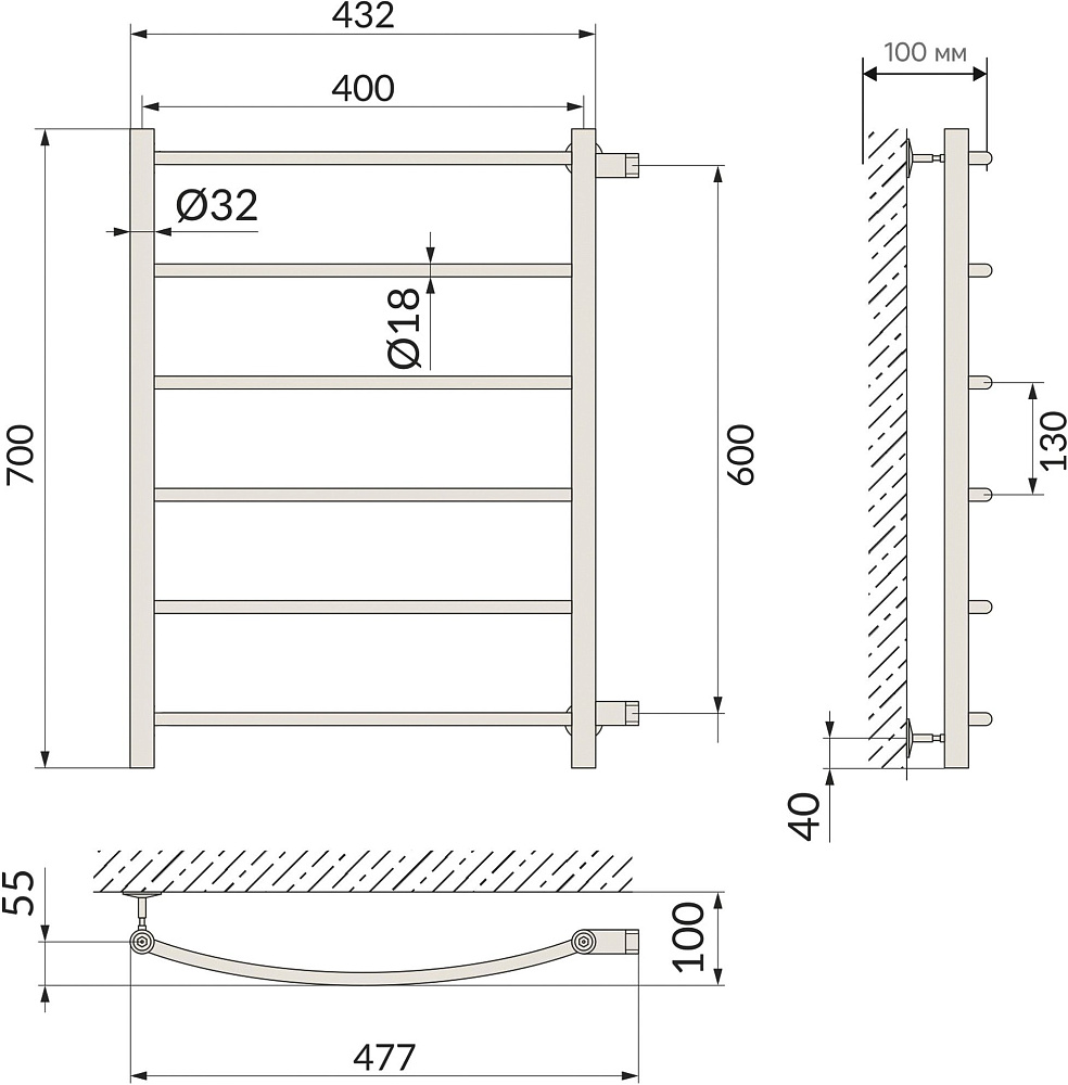 Отзывы о Полотенцесушитель водяной Indigo Arc LASW70-40GFM-б/п-60 70x45 см, graphite metallic, лесенка