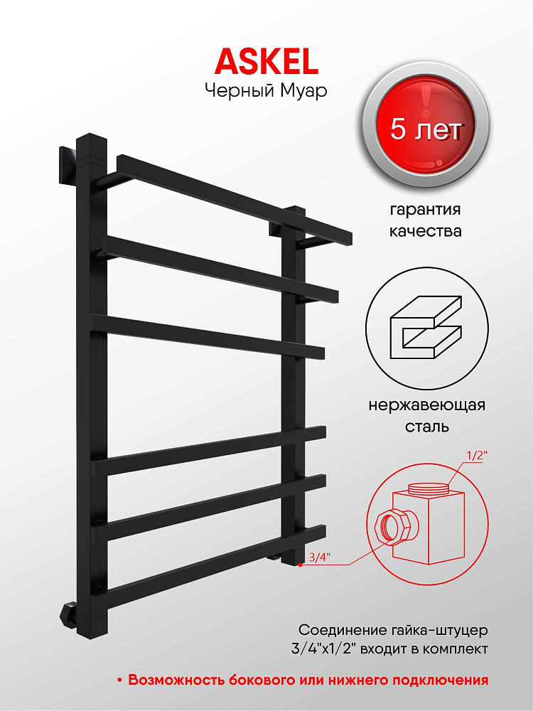 Отзывы о Полотенцесушитель водяной Indigo Askel LASWPF60-40BR 65x45 см, черный муар, лесенка